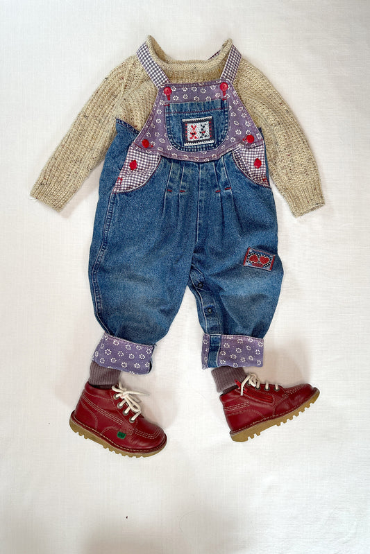 MINI: 90S VINTAGE BUBBLE DUNGAREE WITH PURPLE FLORAL AND GINGHAM PATCHES