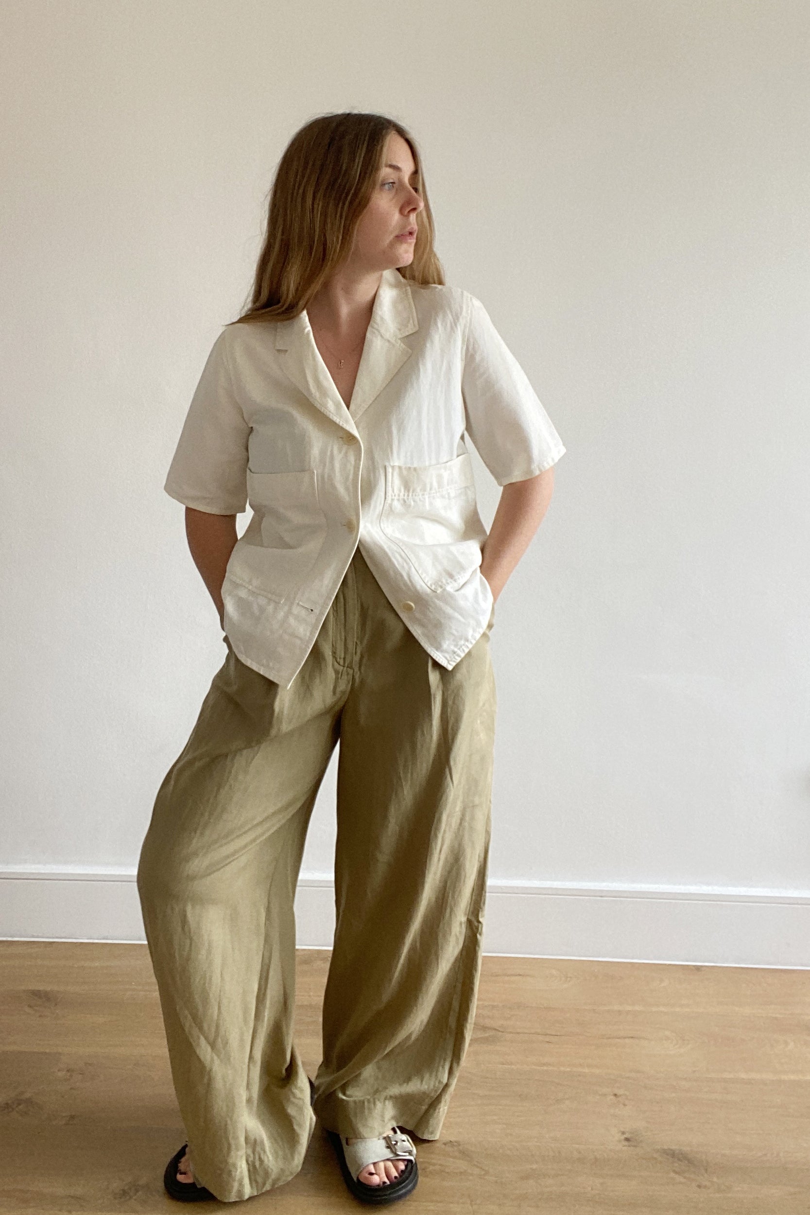 Style Notes: Styled here with COS Open Collar Twill Shirt or Graphic Print Plissé Pleated Top