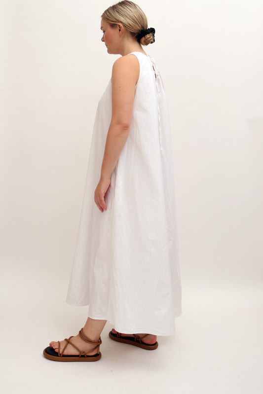 A-LINE TIE-BACK WHITE MIDI DRESS