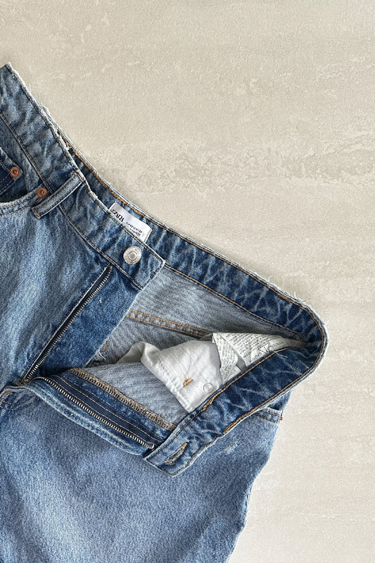 VINTAGE-WASH, HIGH-WAISTED DENIM SHORTS