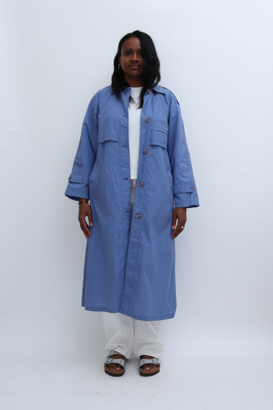 Sold outVINTAGE SKY BLUE TRENCH COAT