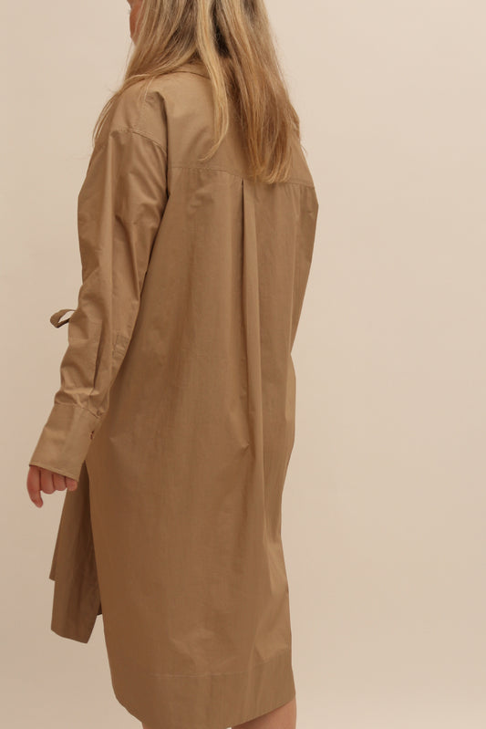 RELAXED COTTON POPLIN DRAWSTRING SHIRT DRESS
