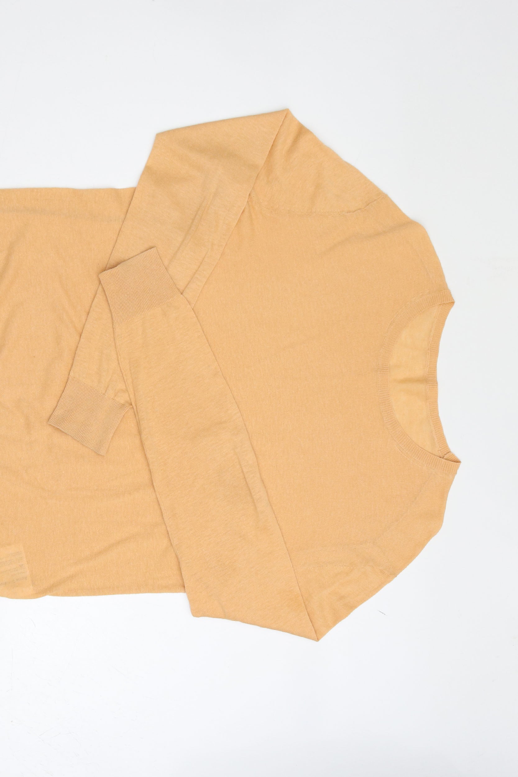 This ACNE STUDIOS SS14 fine knit is the perfect transitional piece — lightweight and designed in a beautiful light mustard shade, it’s an easy way to add colour and comfort to your wardrobe. We love it paired with black leather, such as our vintage leather trousers for a super cool transitional outfit.