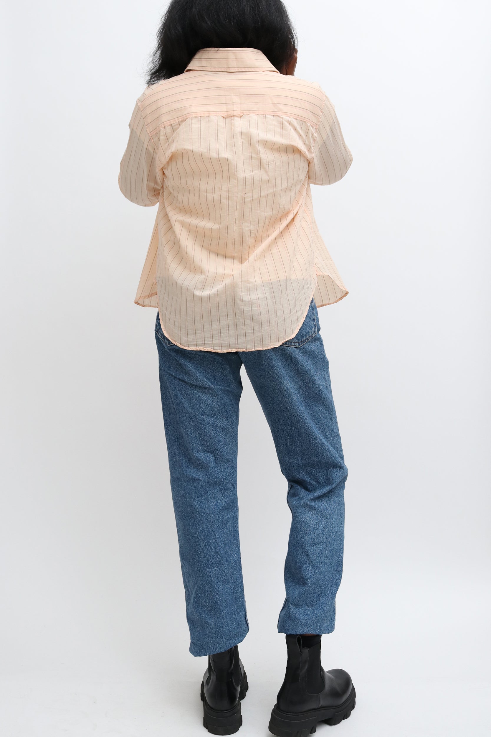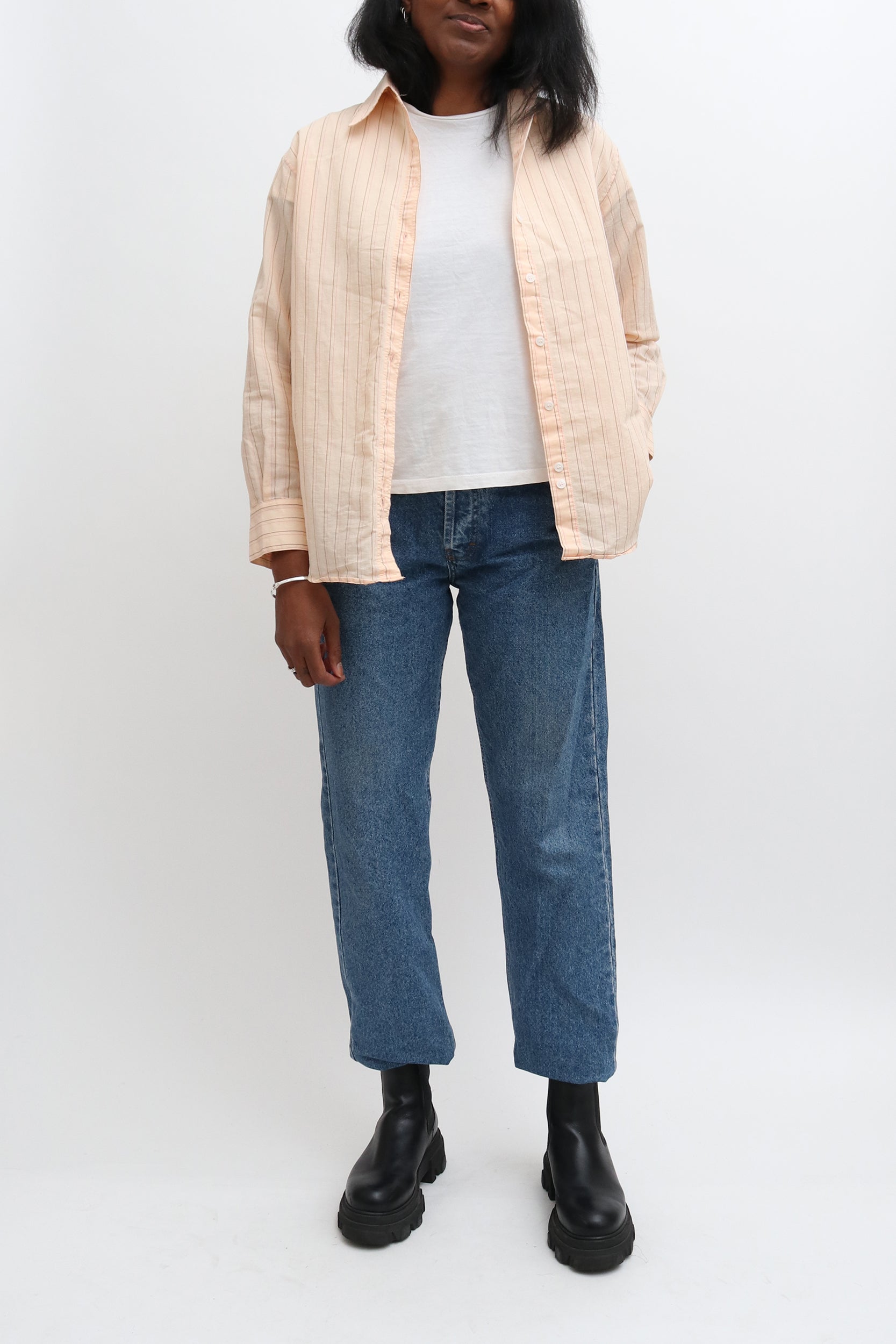 This Acne Studios striped shirt is a CORE wardrobe essential. Crafted from a soft cotton blend, the relaxed fit makes it an easy-to-wear everyday piece. The shirt also features a subtle stripe pattern and soft blush tones that elevate a wardrobe classic.