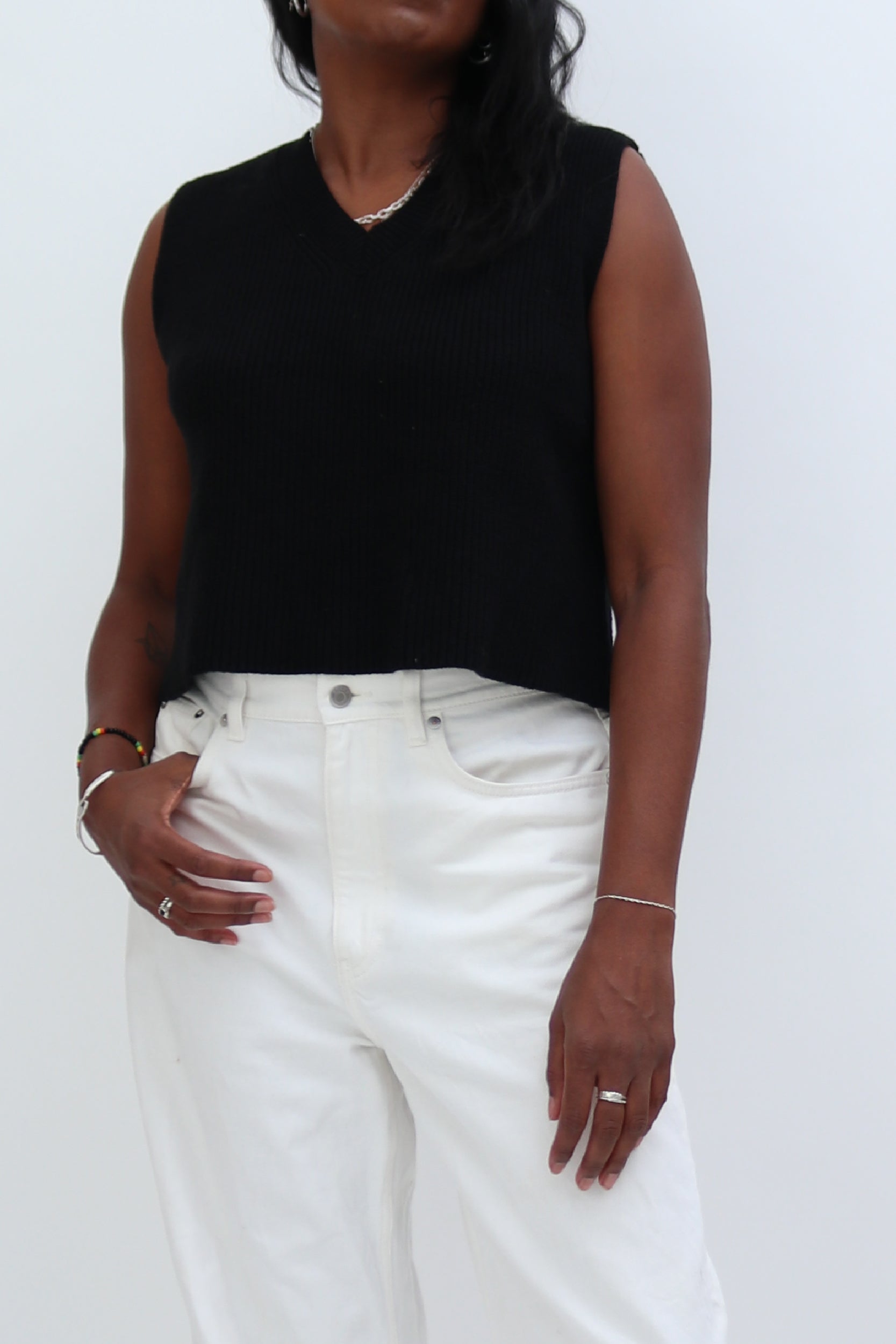 Crafted from a cotton blend, this sleeveless cropped knit tank is the perfect layering piece for autumn. We love this piece for its transitional weather practicality as it can be worn as a top or over the top of shirts & tops as the weather gets colder.