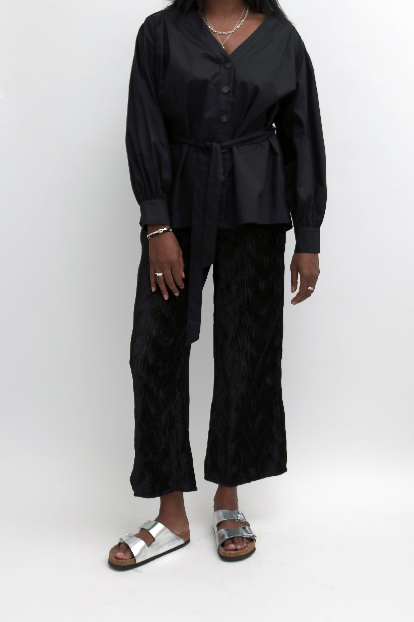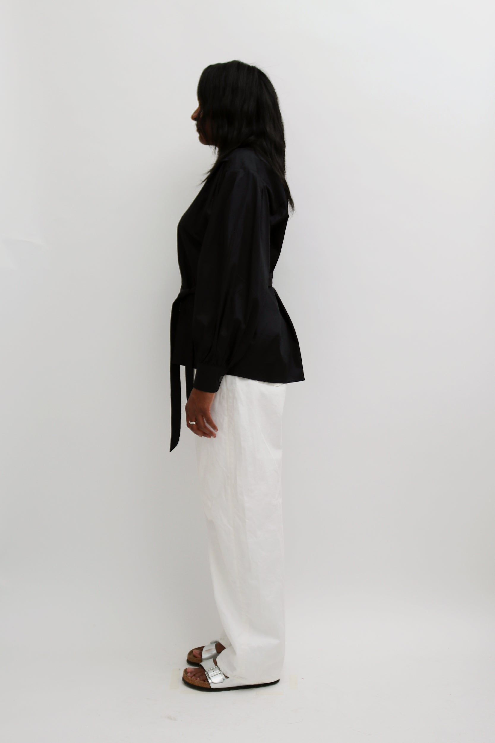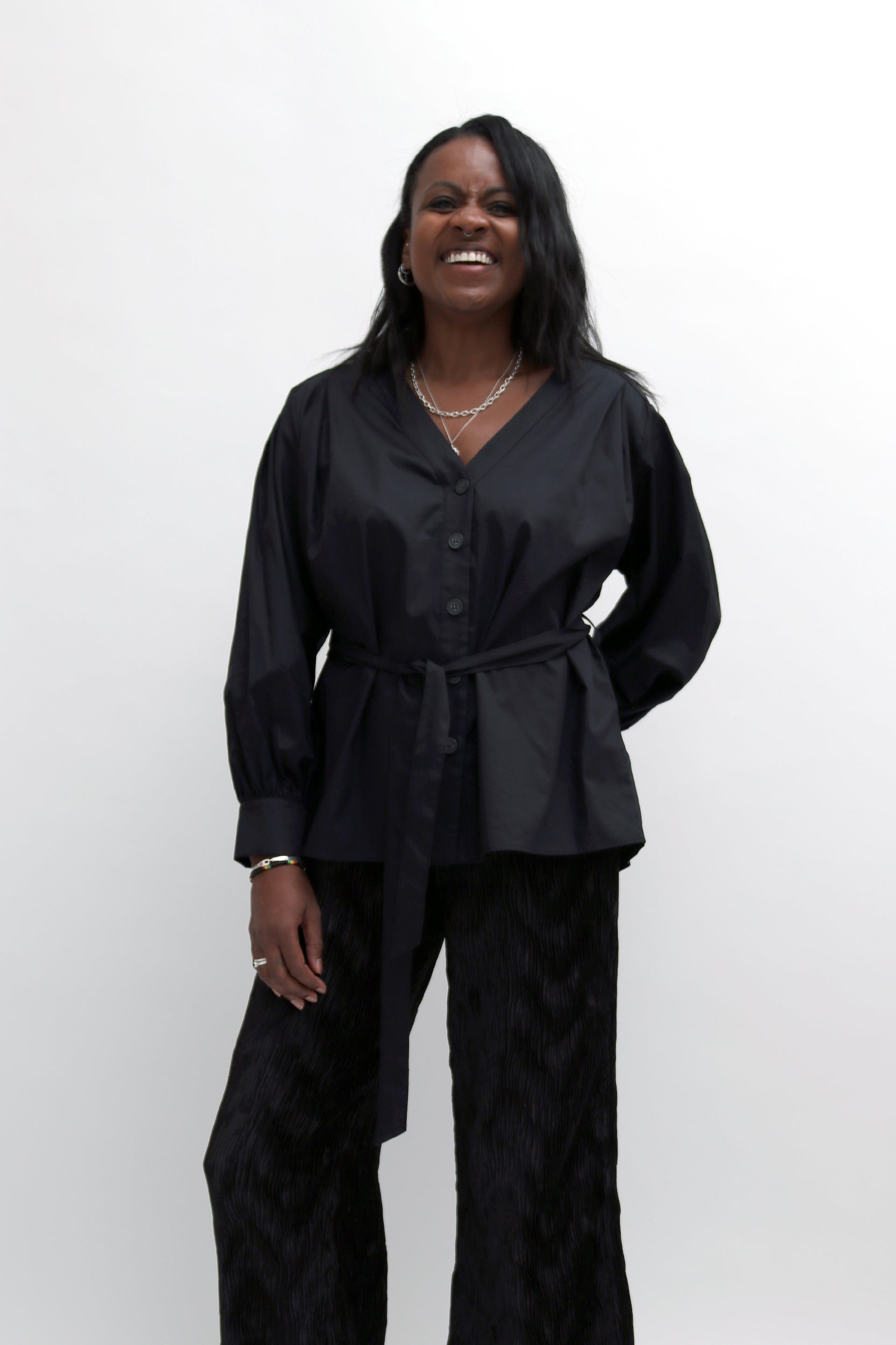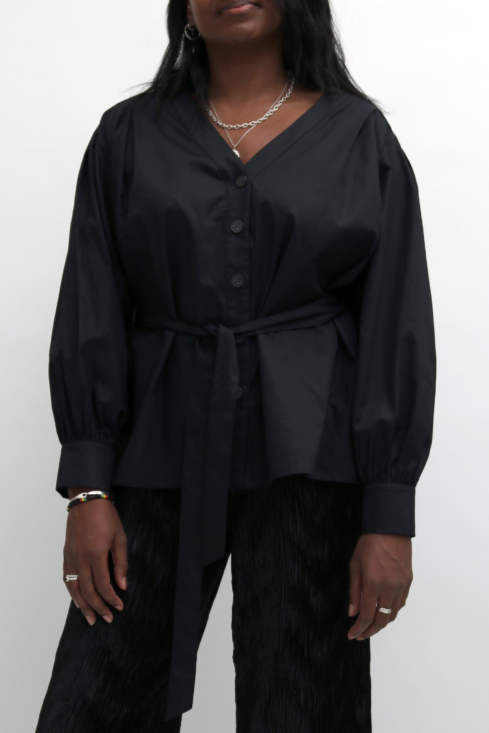 oThis button front blouse is an easy-to-style wardrobe staple. Crafted from breathable cotton, it features a flattering a v-neck and balloon sleeves creating a gorgeous silhouette. It also comes with a belt to cinch the waist if desired.