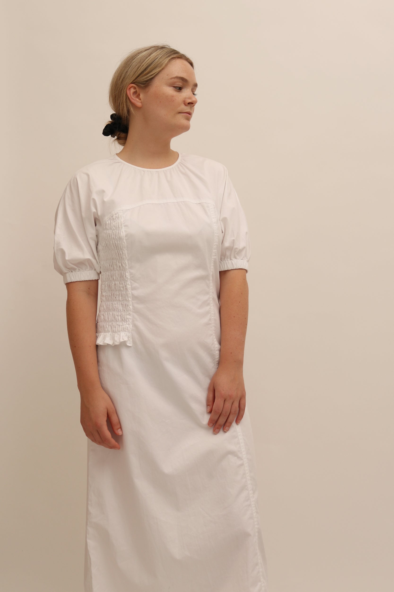 This pre-loved asymmetric dress, originally from Cos, is a summer piece with versatility. Crafted from a soft brushed cotton and cut for a midi length, it features a smocked design detail that accentuates the waist and creates a contemporary silhouette.