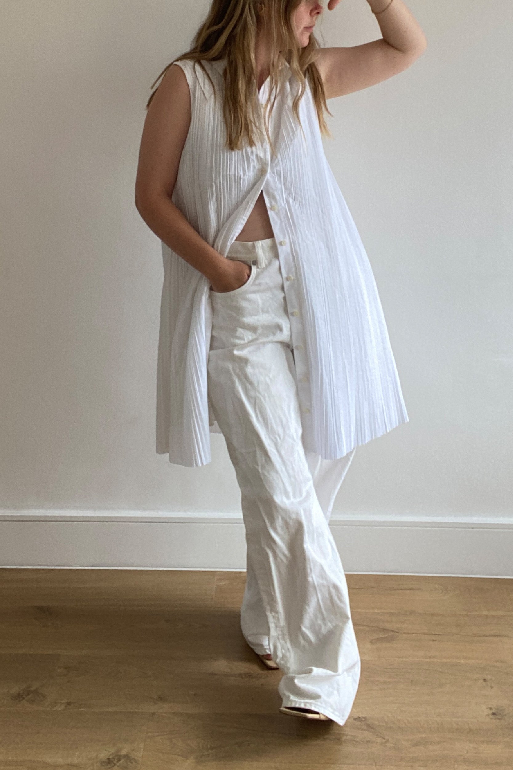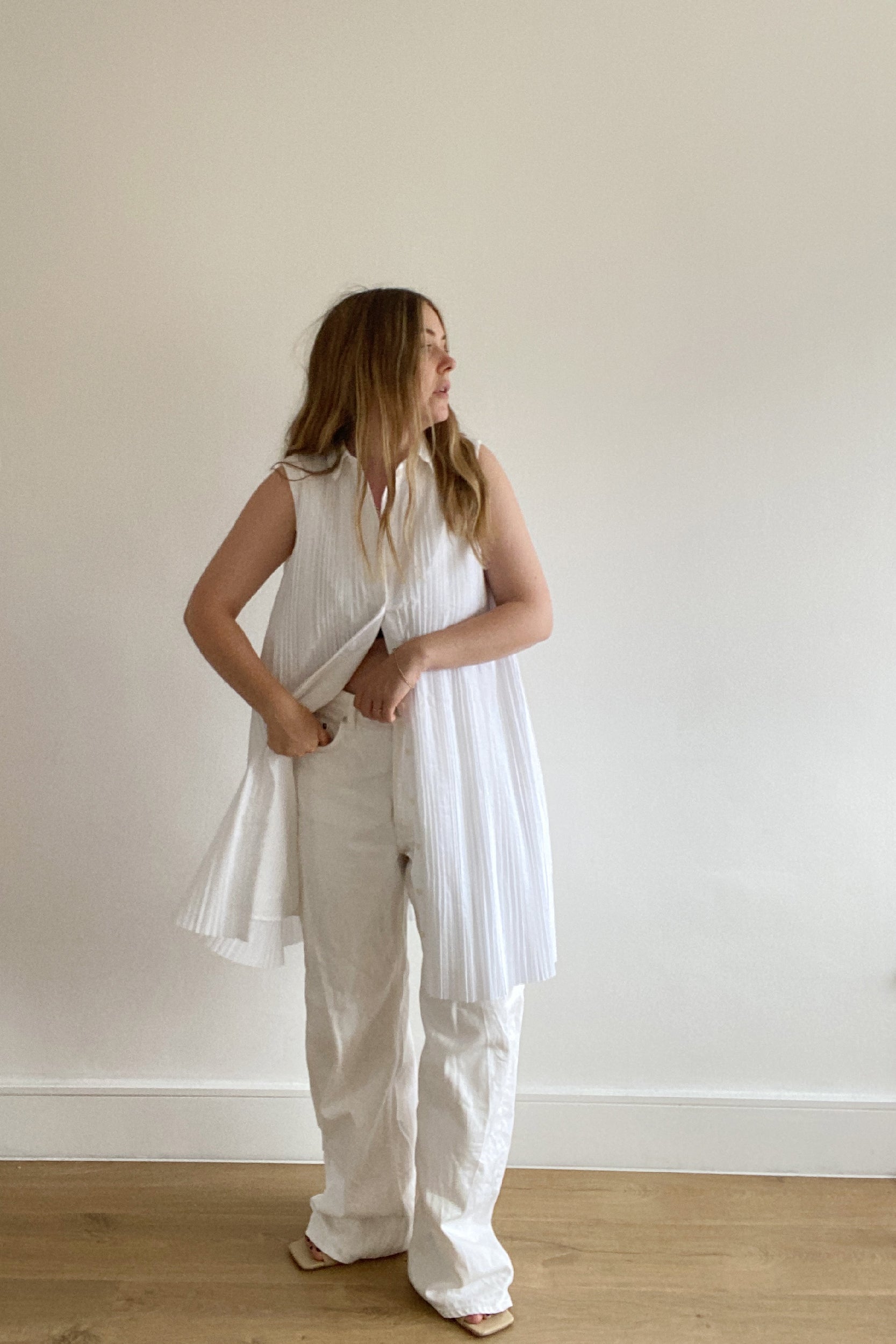 COS SLEEVELESS PLEATED SHIRT DRESS