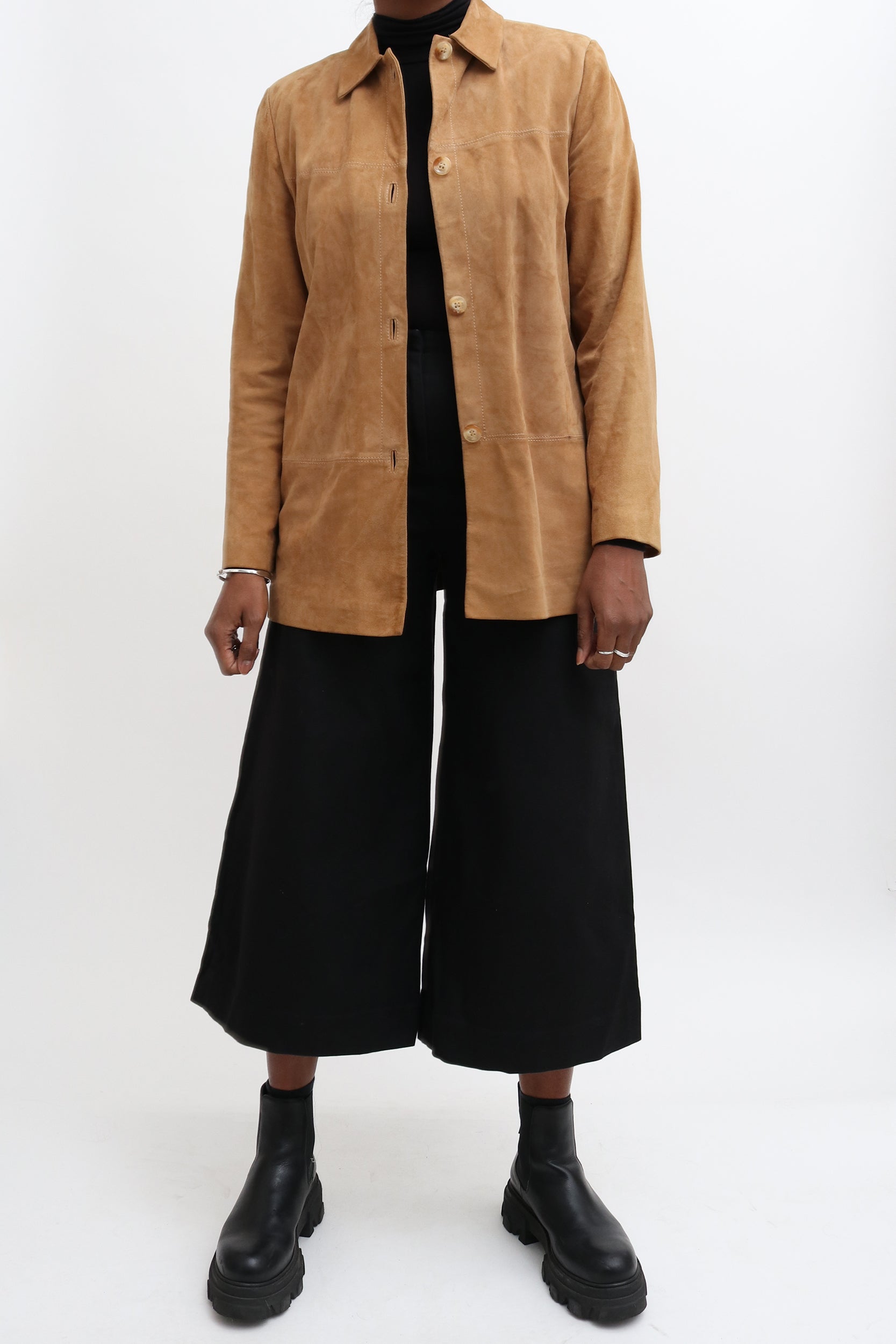 Style Notes: Styled with Knitted Lambswool Cardigan, Vintage Suede Shirt Jacket and velvet Fenn Wright Manson blazer