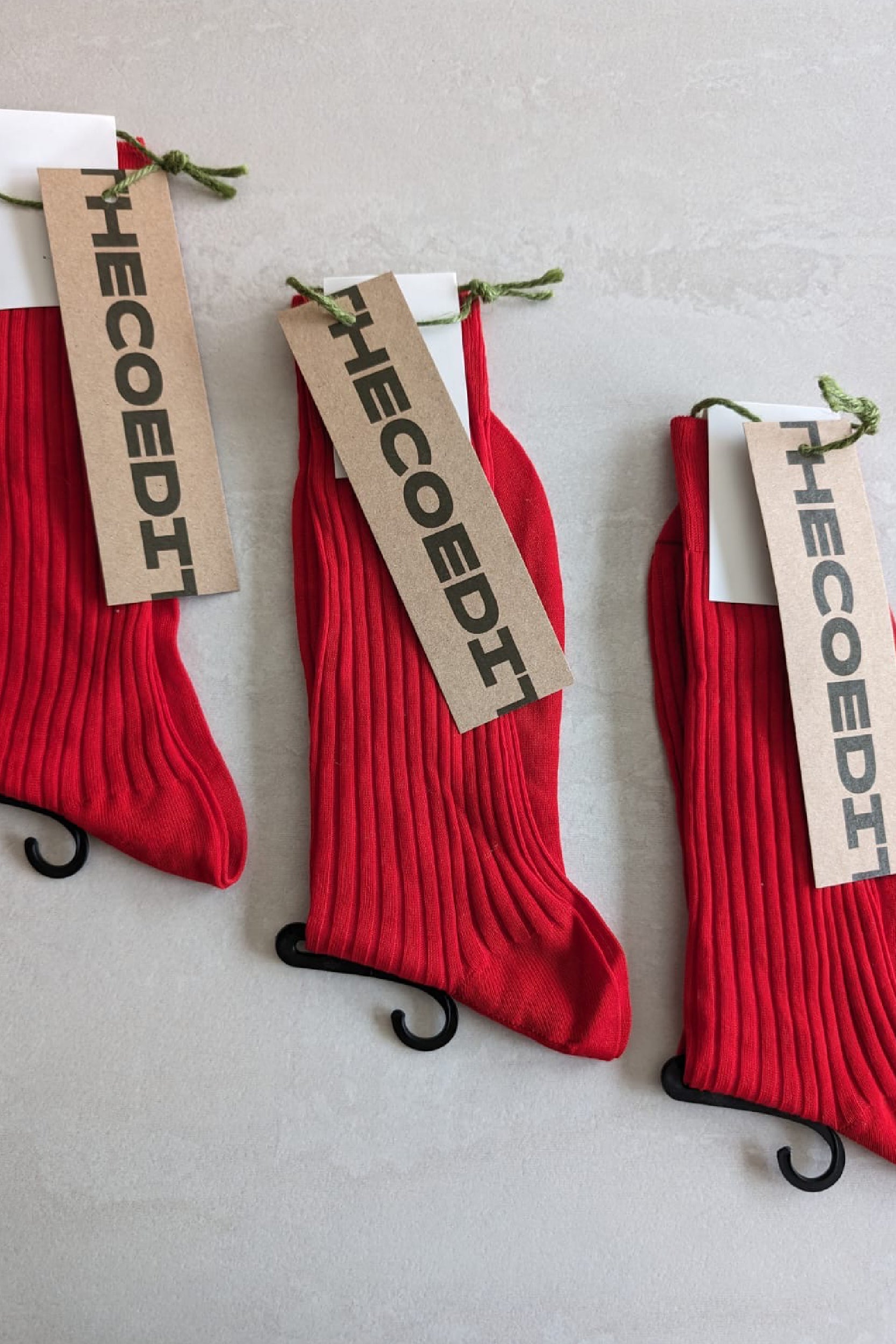 Beautifully Made in England, these sample Kent & Curwen fine ribbed socks are the perfect styling accessory for the festive season, or would make an effortless stocking filler.