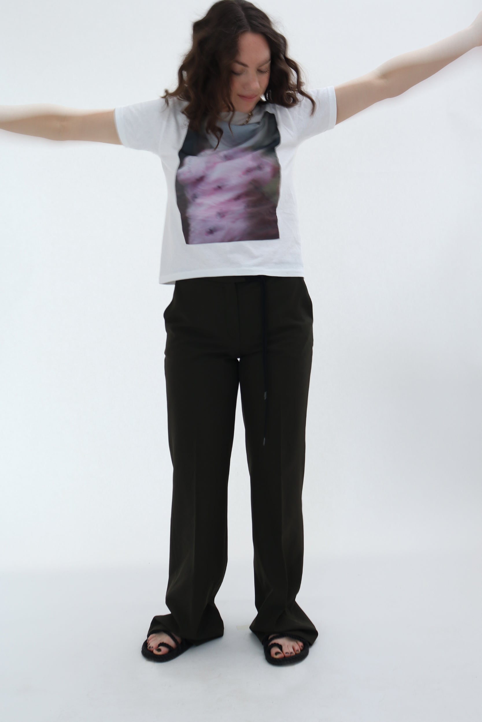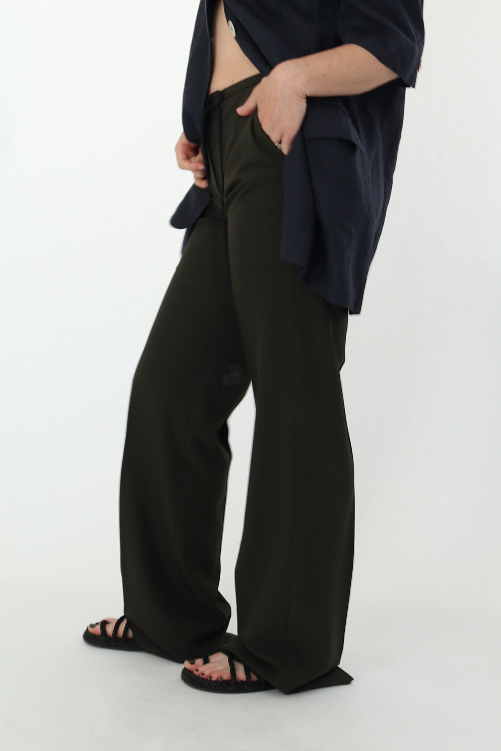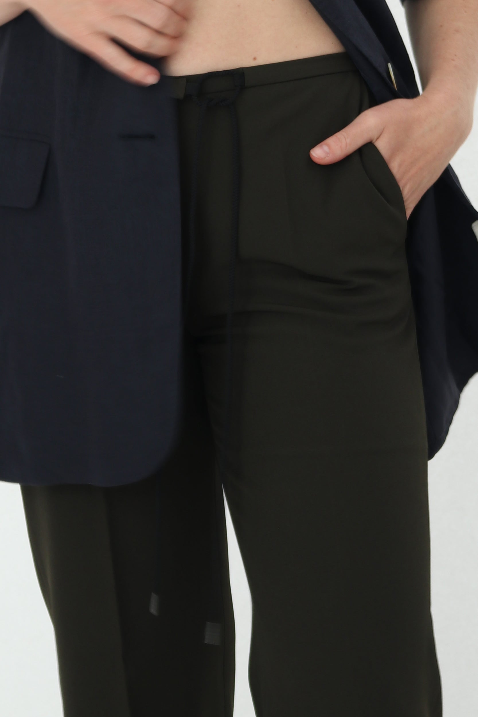 KHAKI TAILORED TROUSERS WITH TIE DETAIL