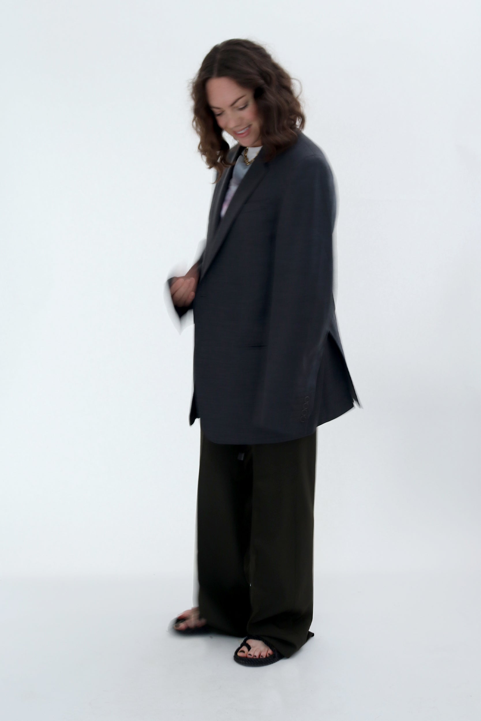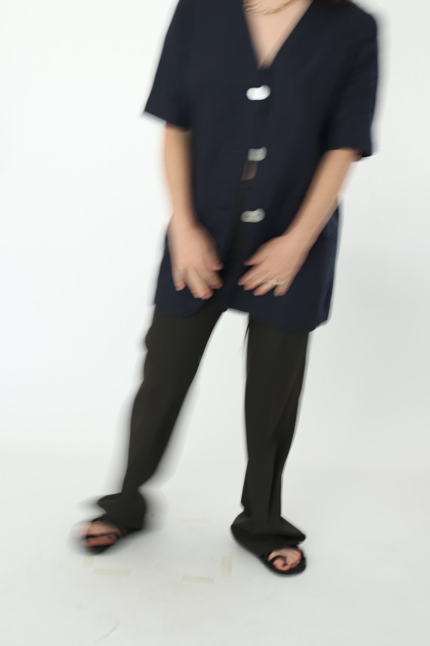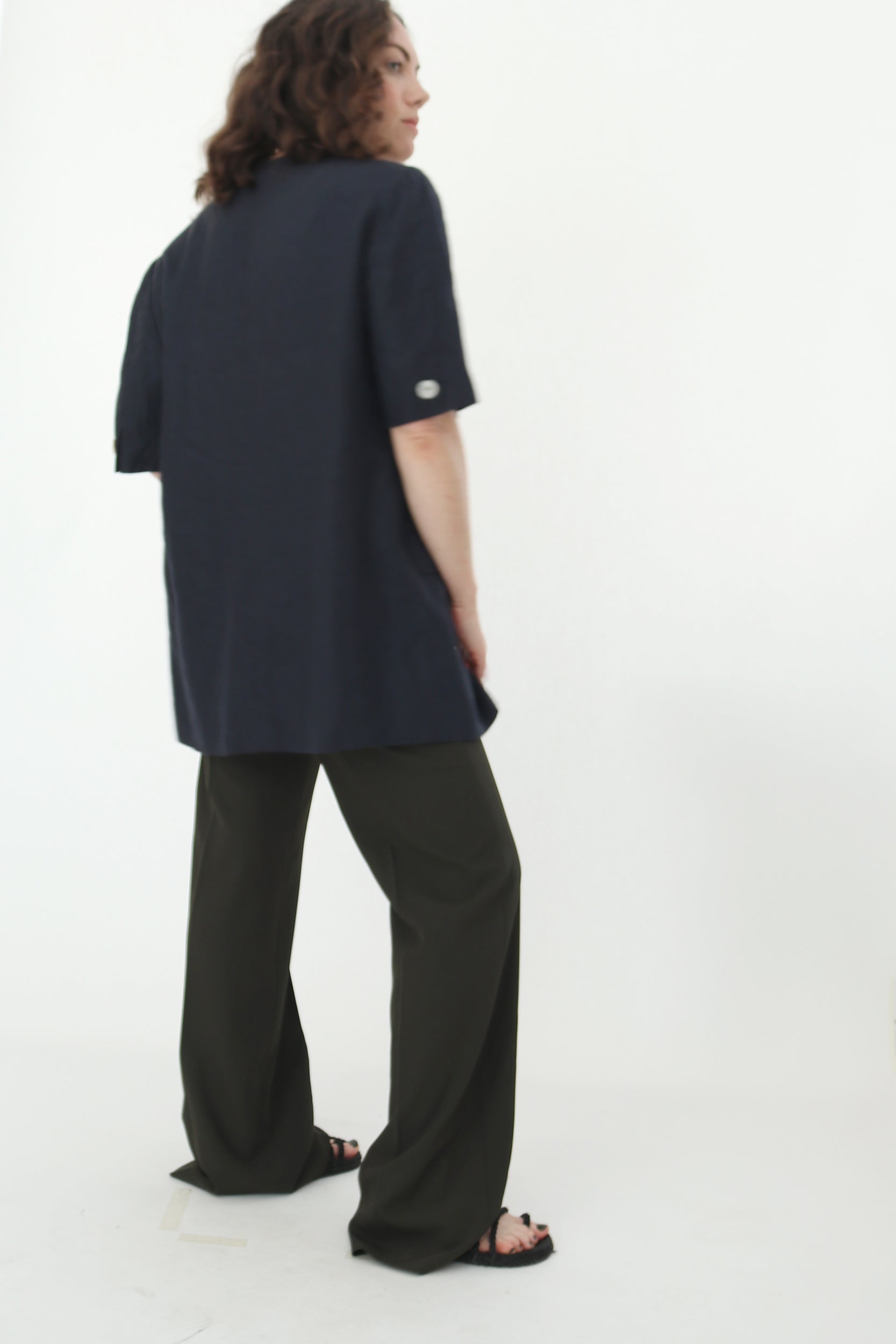 KHAKI TAILORED TROUSERS WITH TIE DETAIL