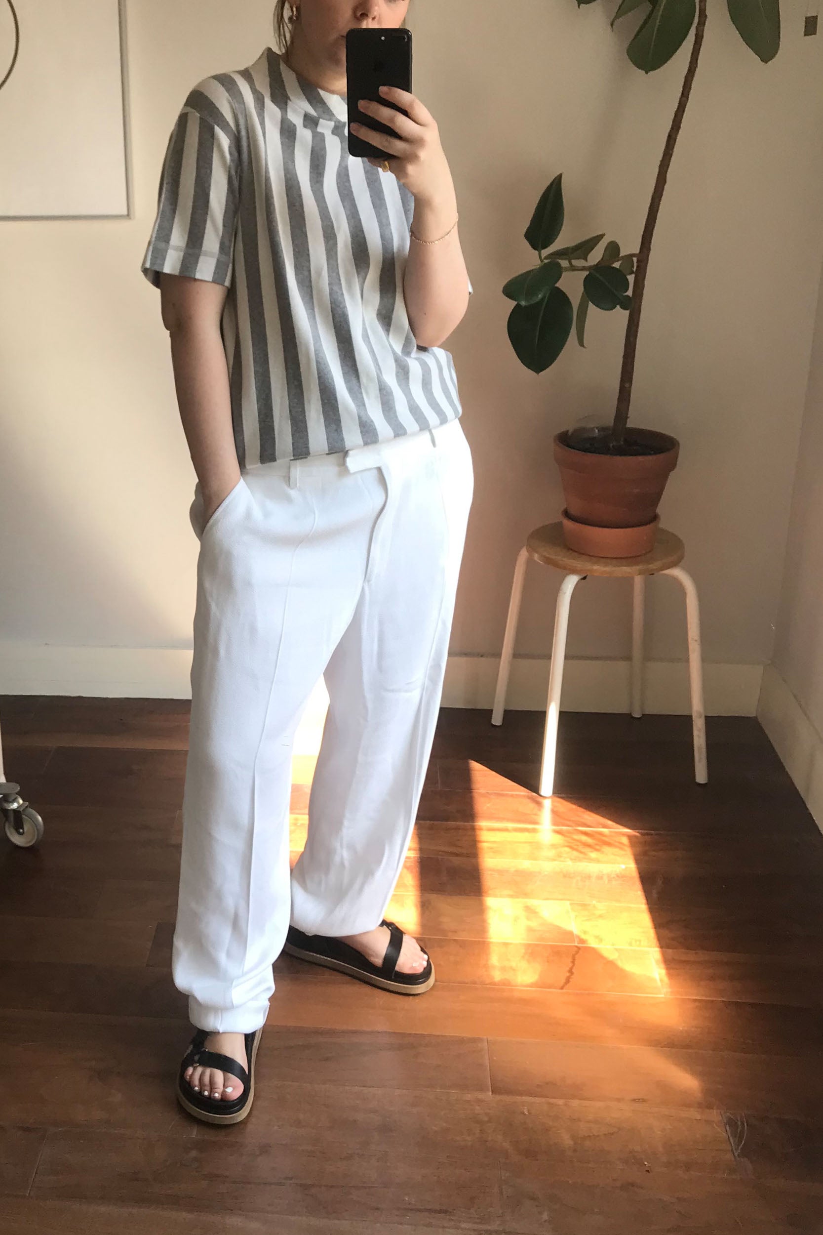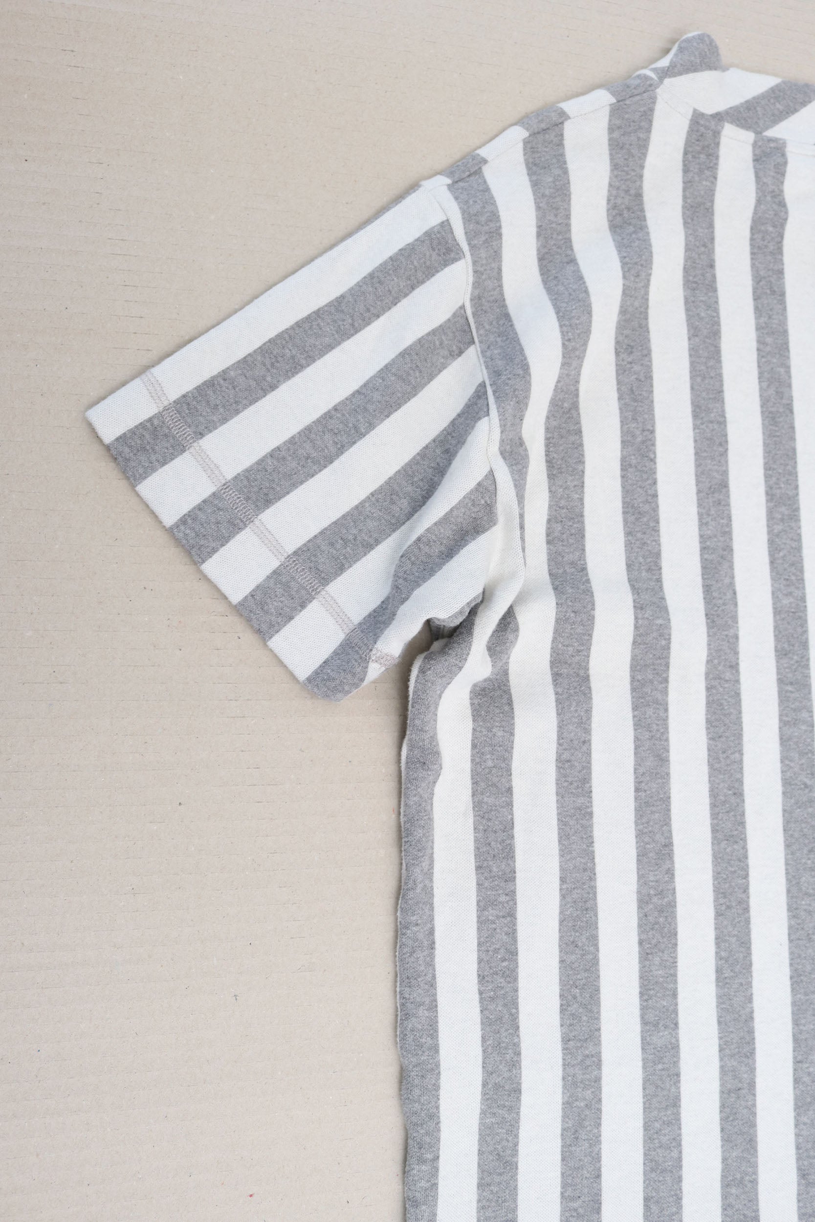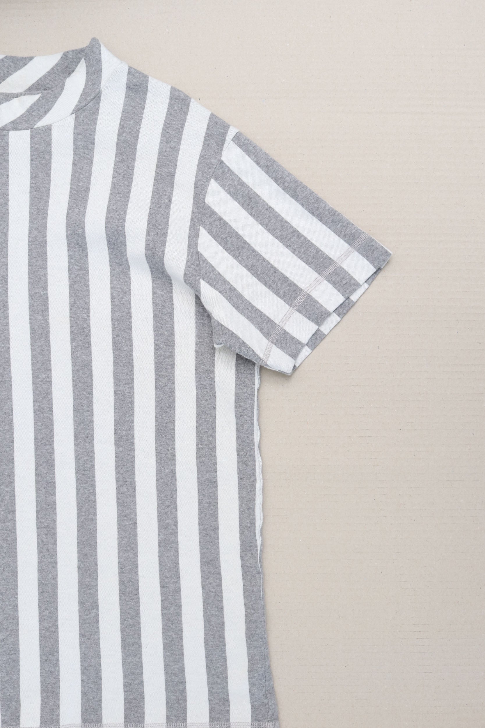 Unisex lightweight knit top from independent French brand Libertine made from the softest cotton. Features a grey & white stripe pattern with unique details such as the longline sleeves and a mock neck making it a great piece to upgrade your casualwear.