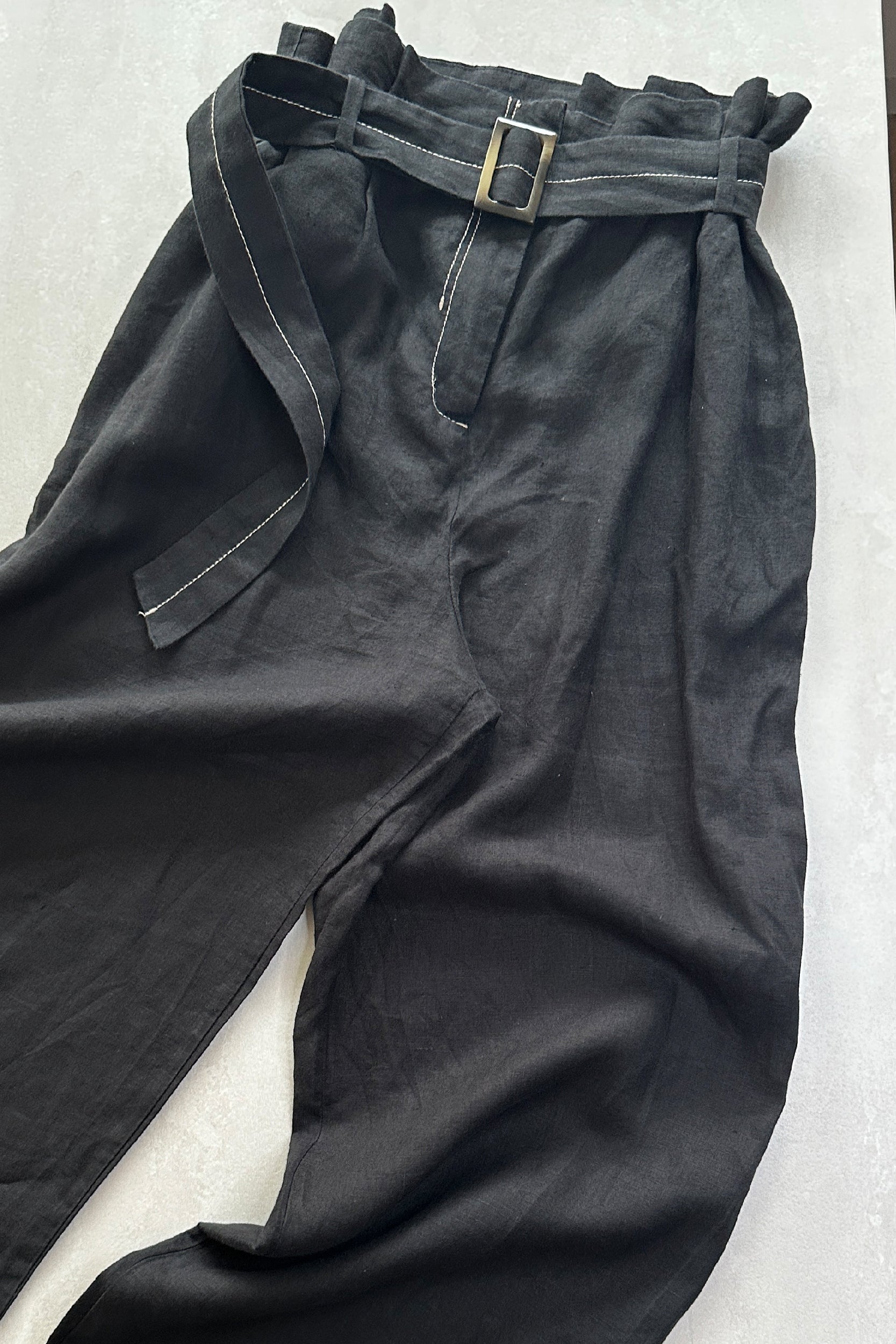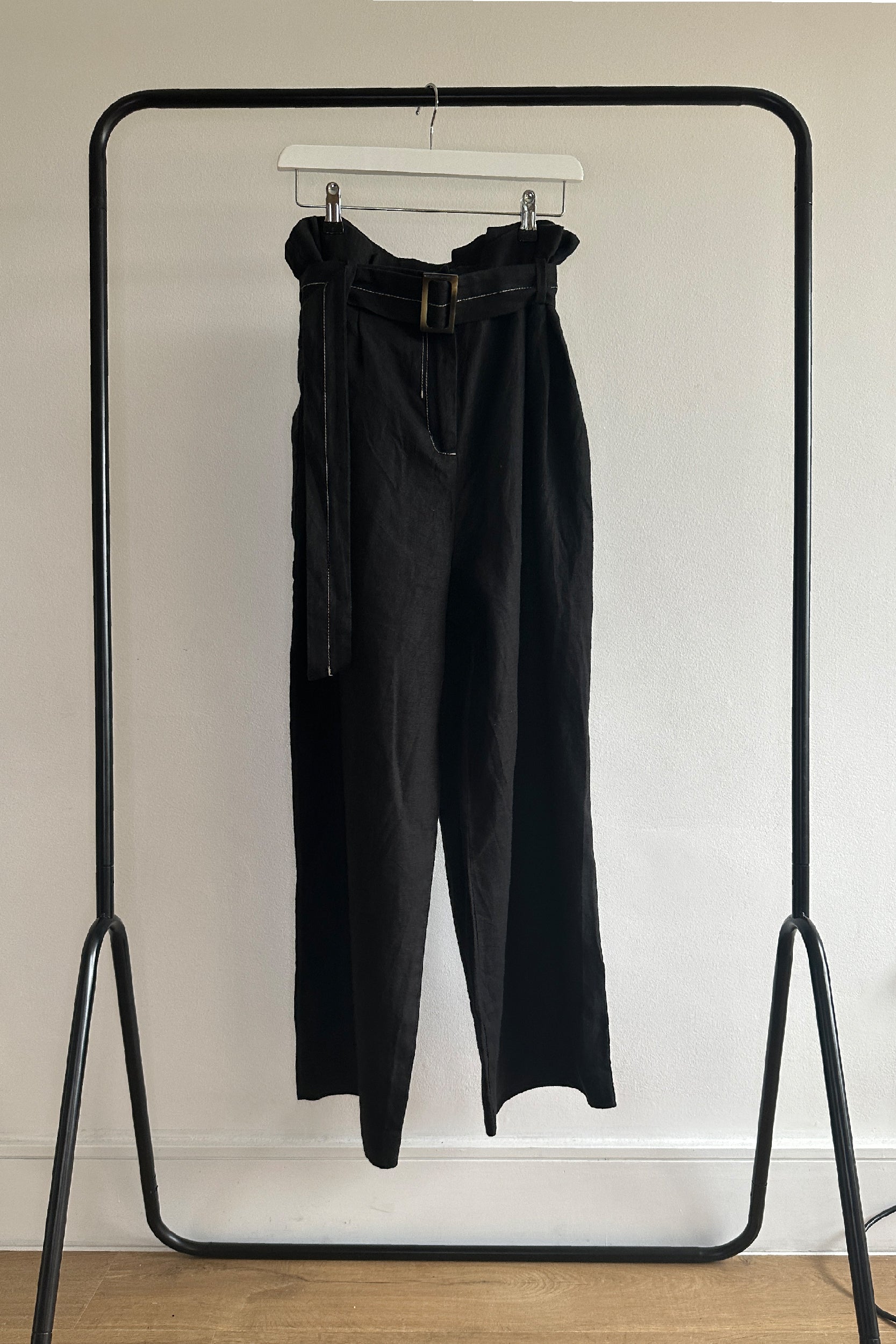 Keep cool in the summer heat with these breathable linen belted paper-bag trousers. Cut with a flattering high waist and a relaxed wide leg, they are a comfortable option that are extremely versatile for summer styling.