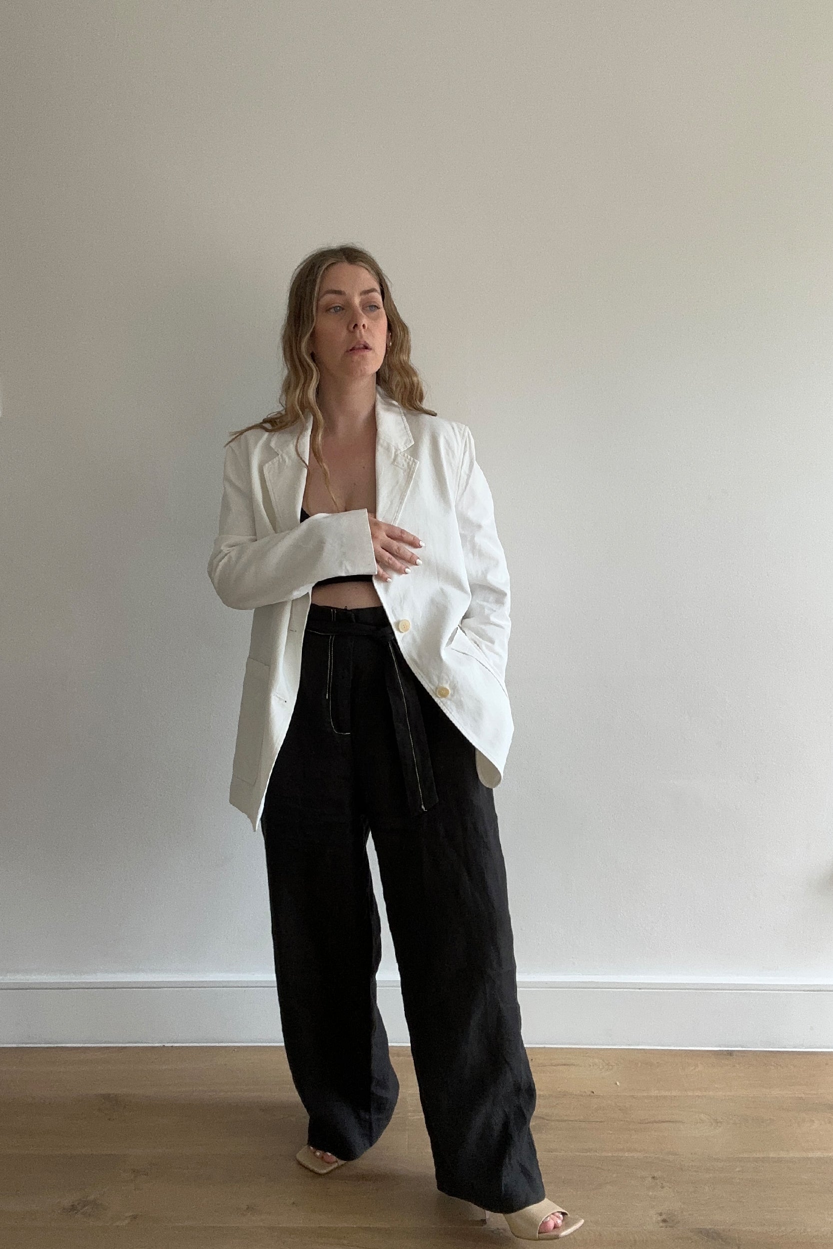 Fit Notes: High-waisted and wide through leg, with removable belt. Shown here on Hannah, who is 5'4" and usually wears a UK 10-12