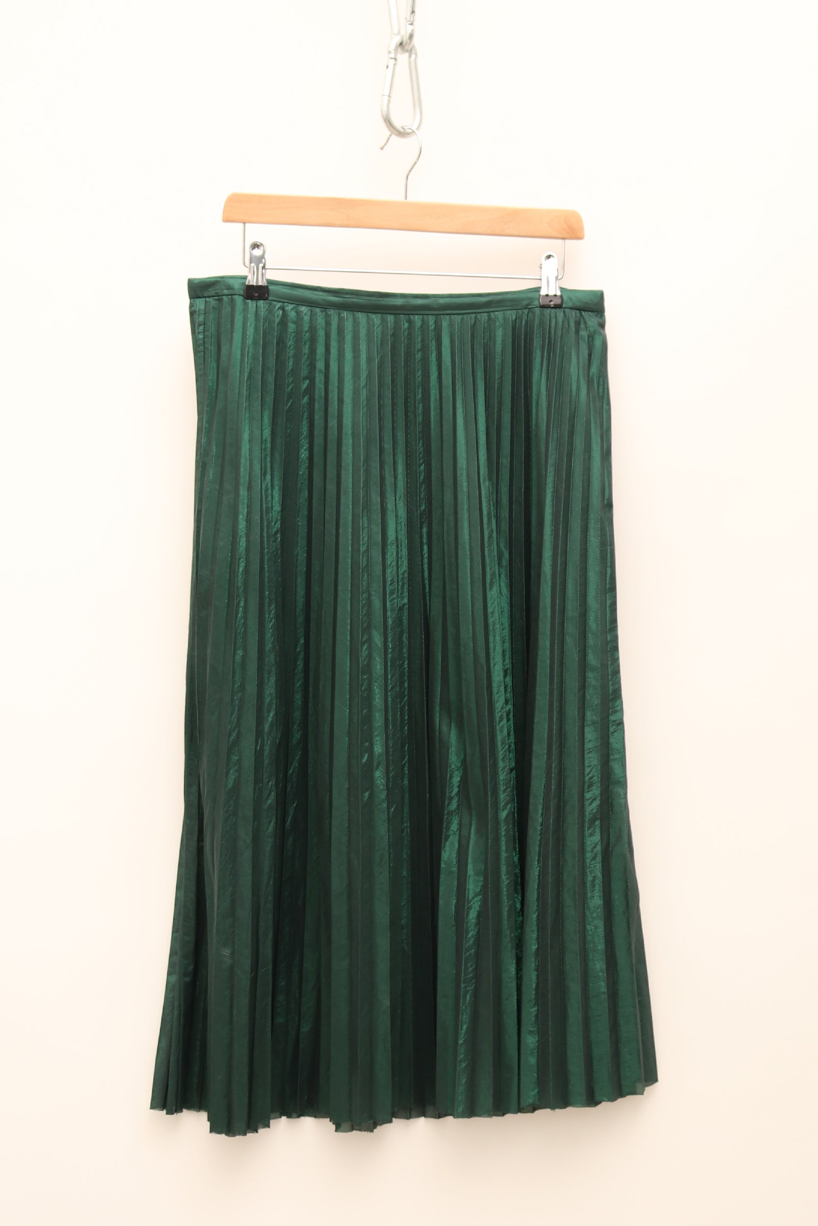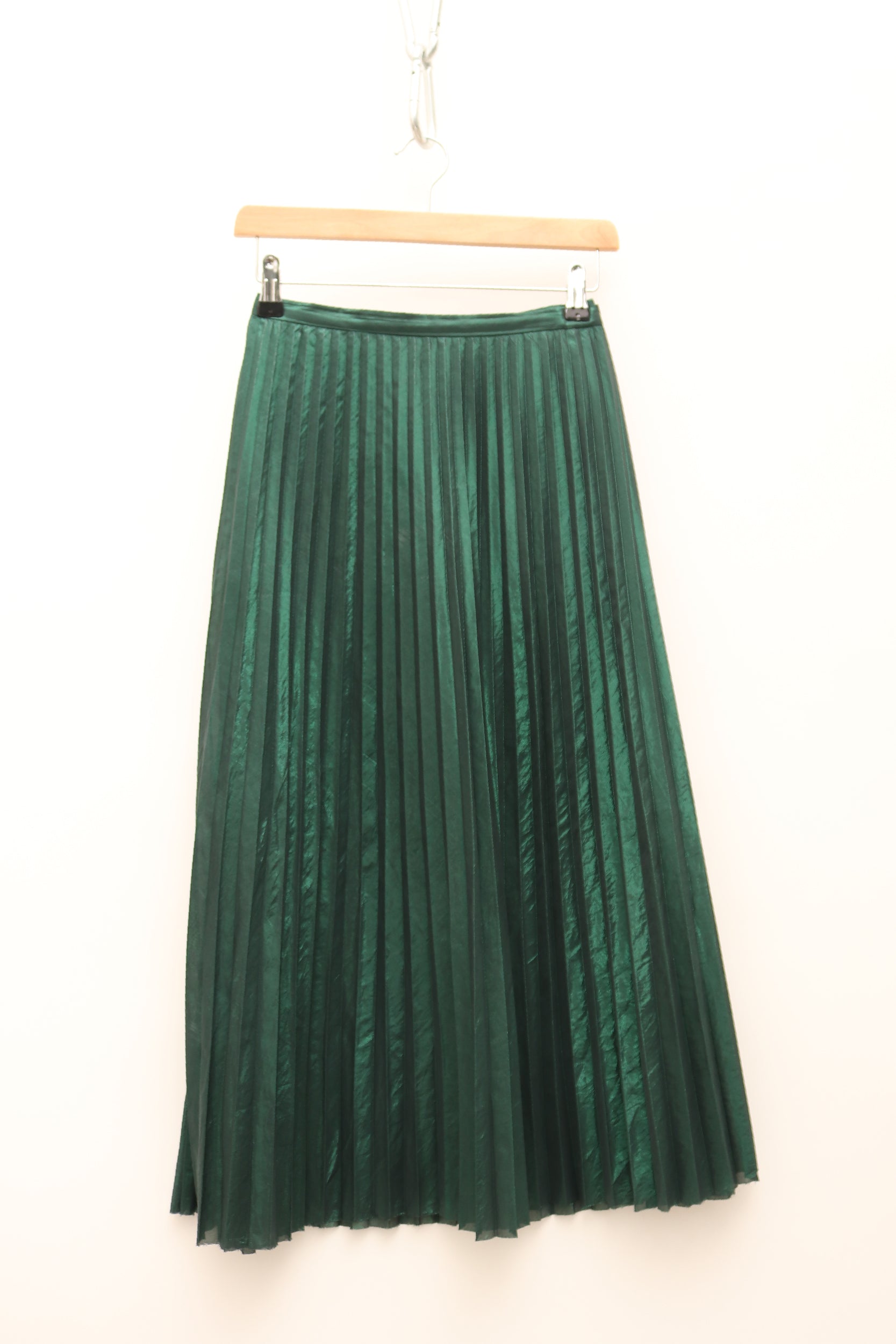Metallic Pleated Emerald Midi Skirt