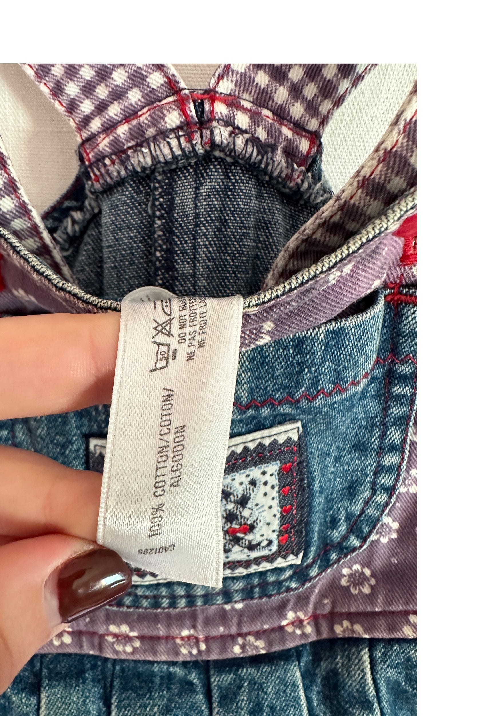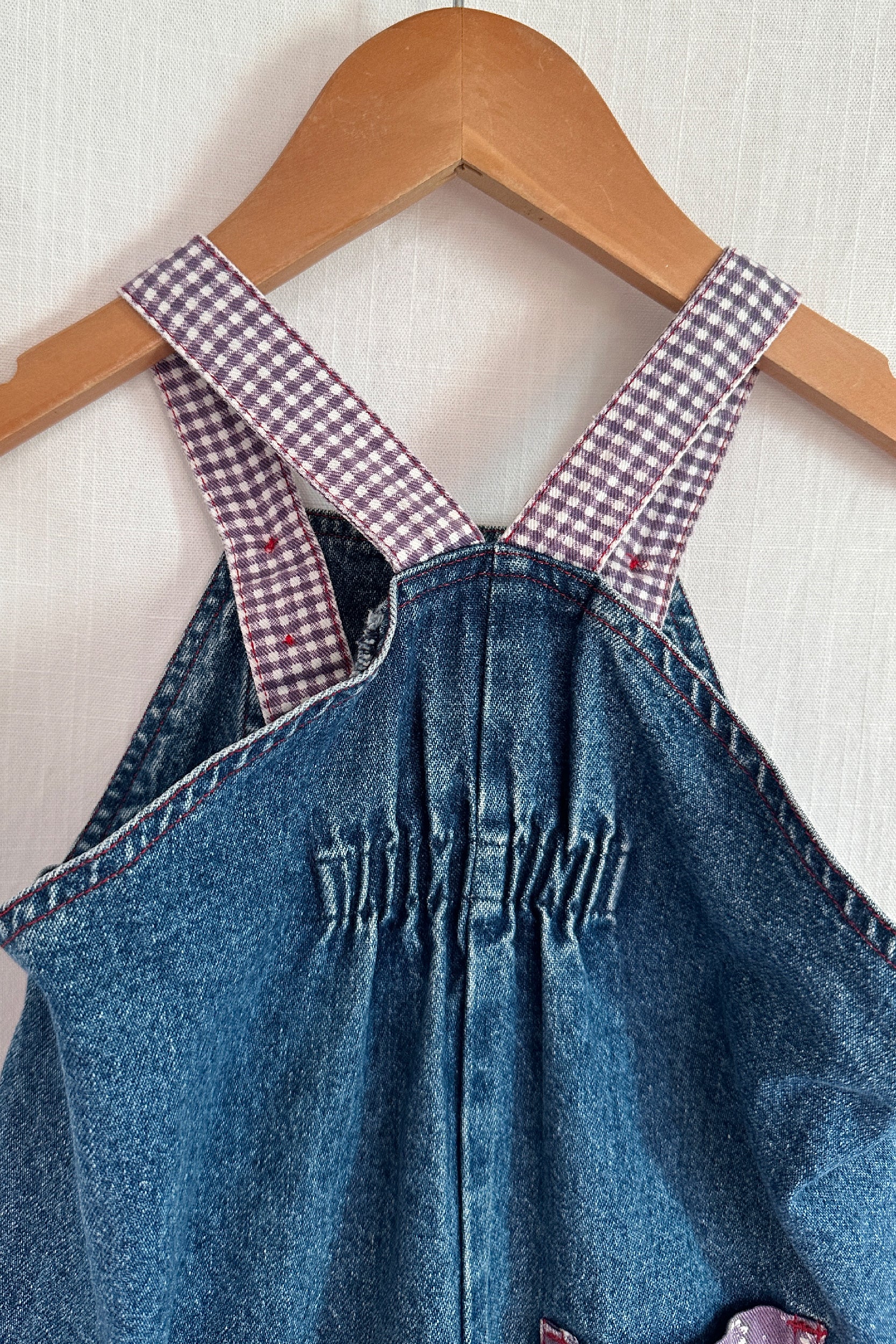 MINI: 90S VINTAGE BUBBLE DUNGAREE WITH PURPLE FLORAL AND GINGHAM PATCHES