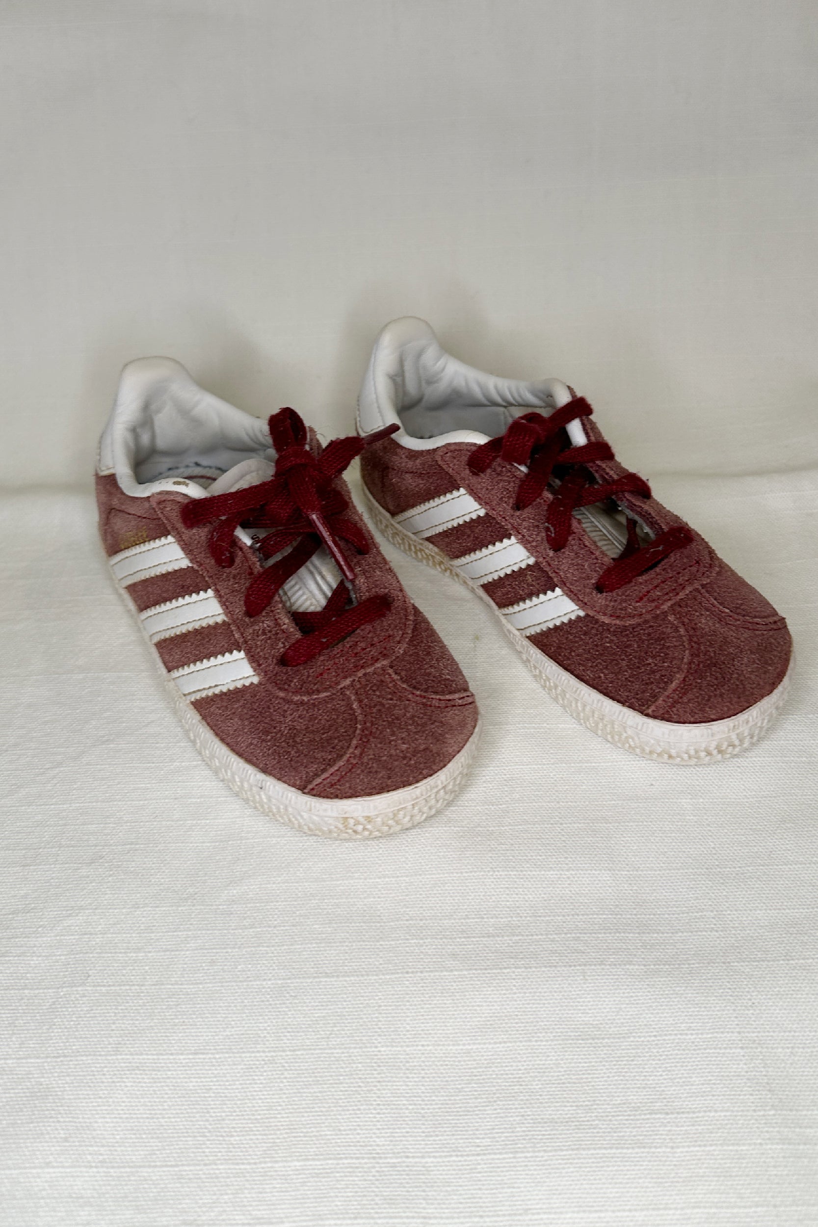 Adidas Originals, classic Gazelle trainers in burgundy red.