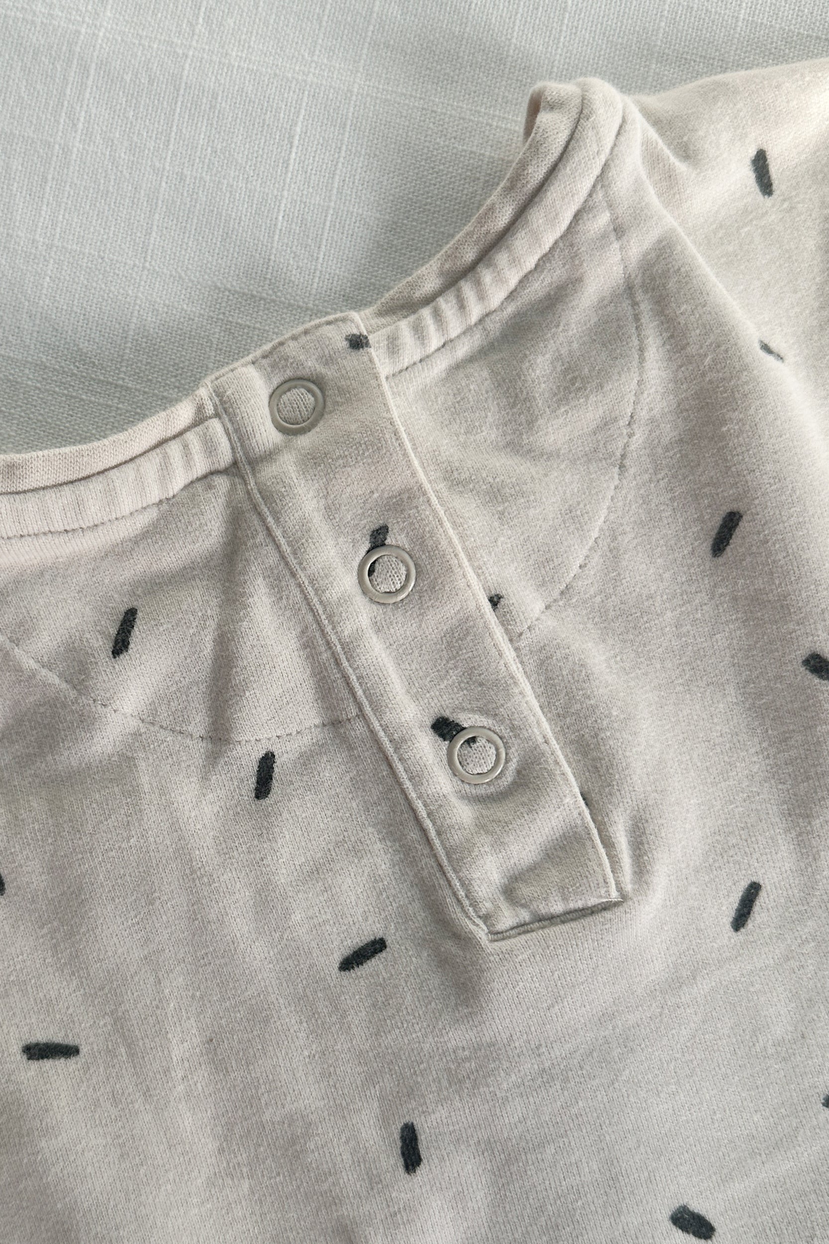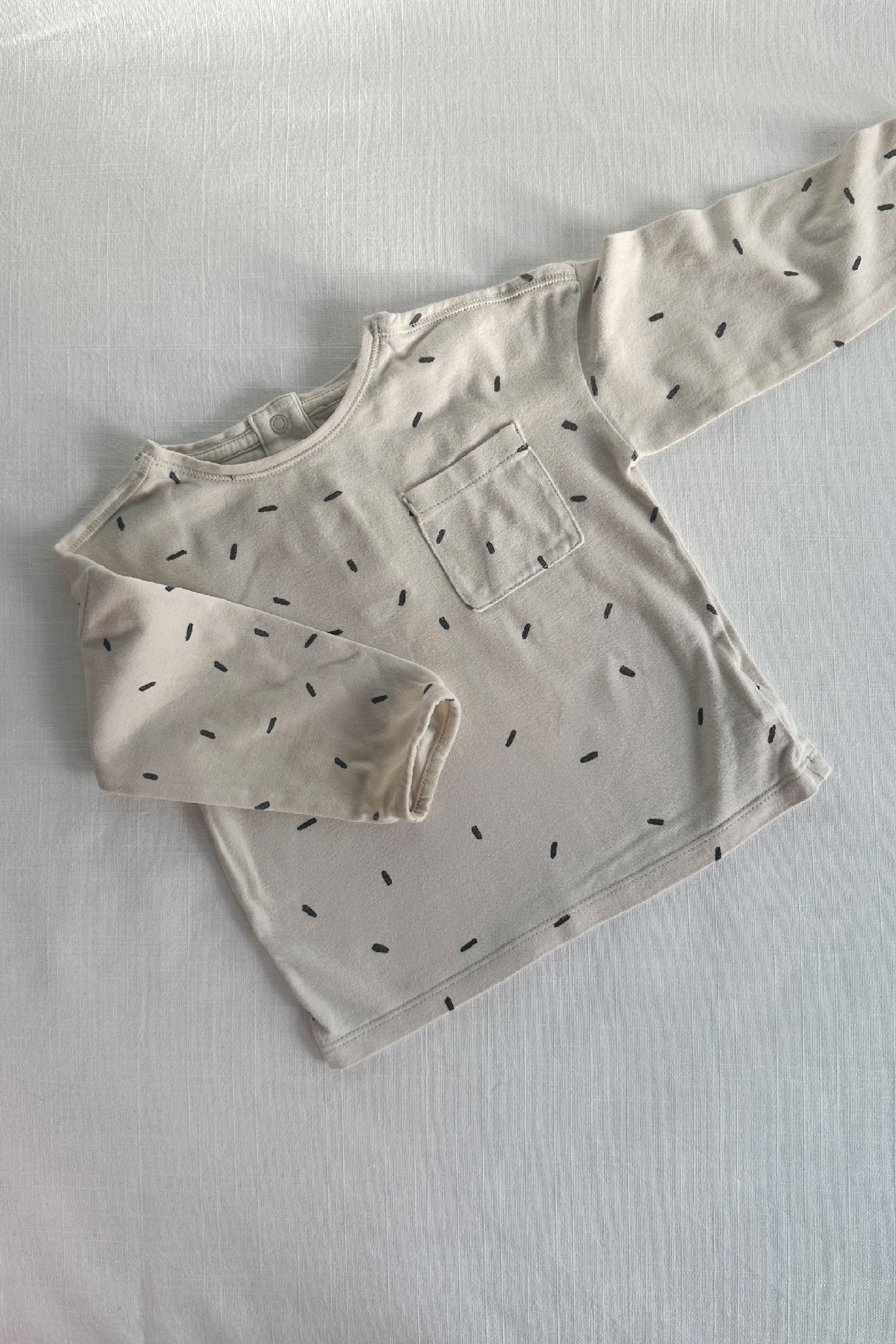 Crafted from cosy brushed cotton jersey, this confetti knit long sleeve tee is the perfect layering piece for your mini, and will serve well through all seasons. Features pocket detail and snap opening on back neck for easy-dressing.