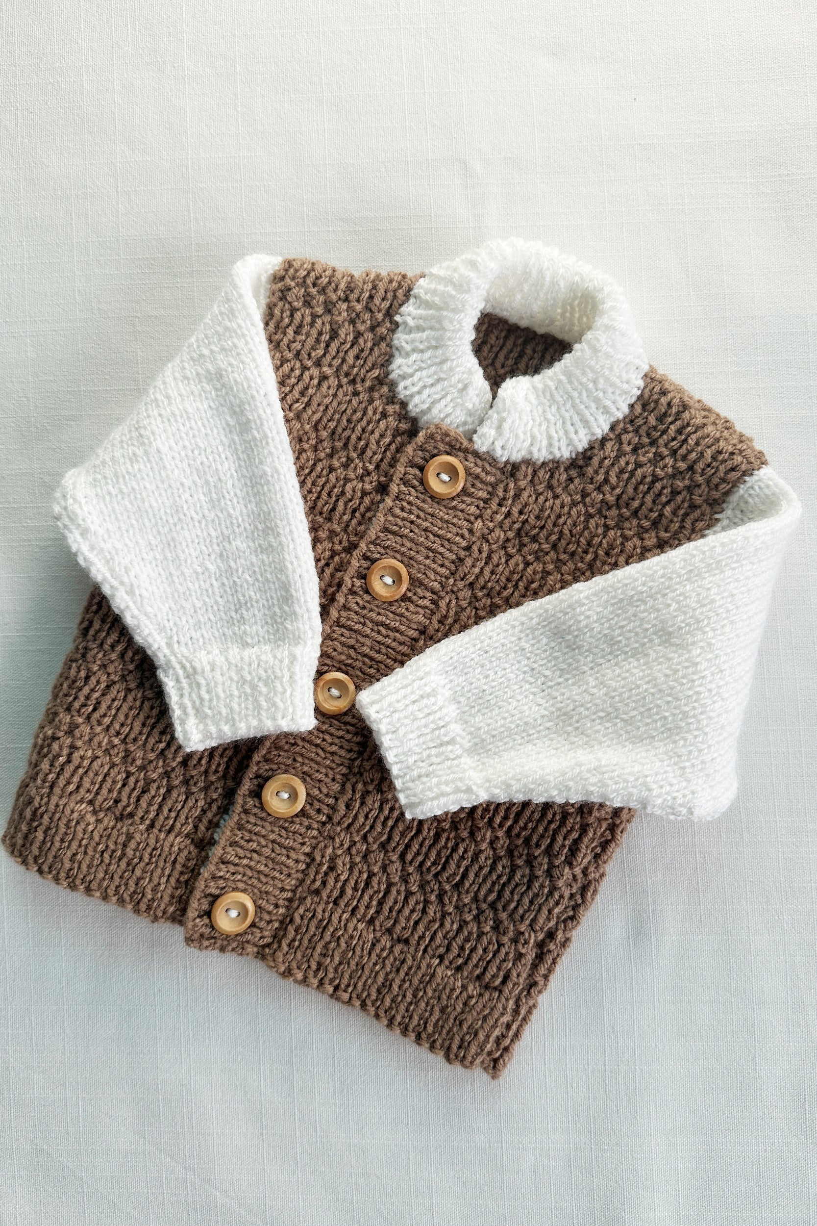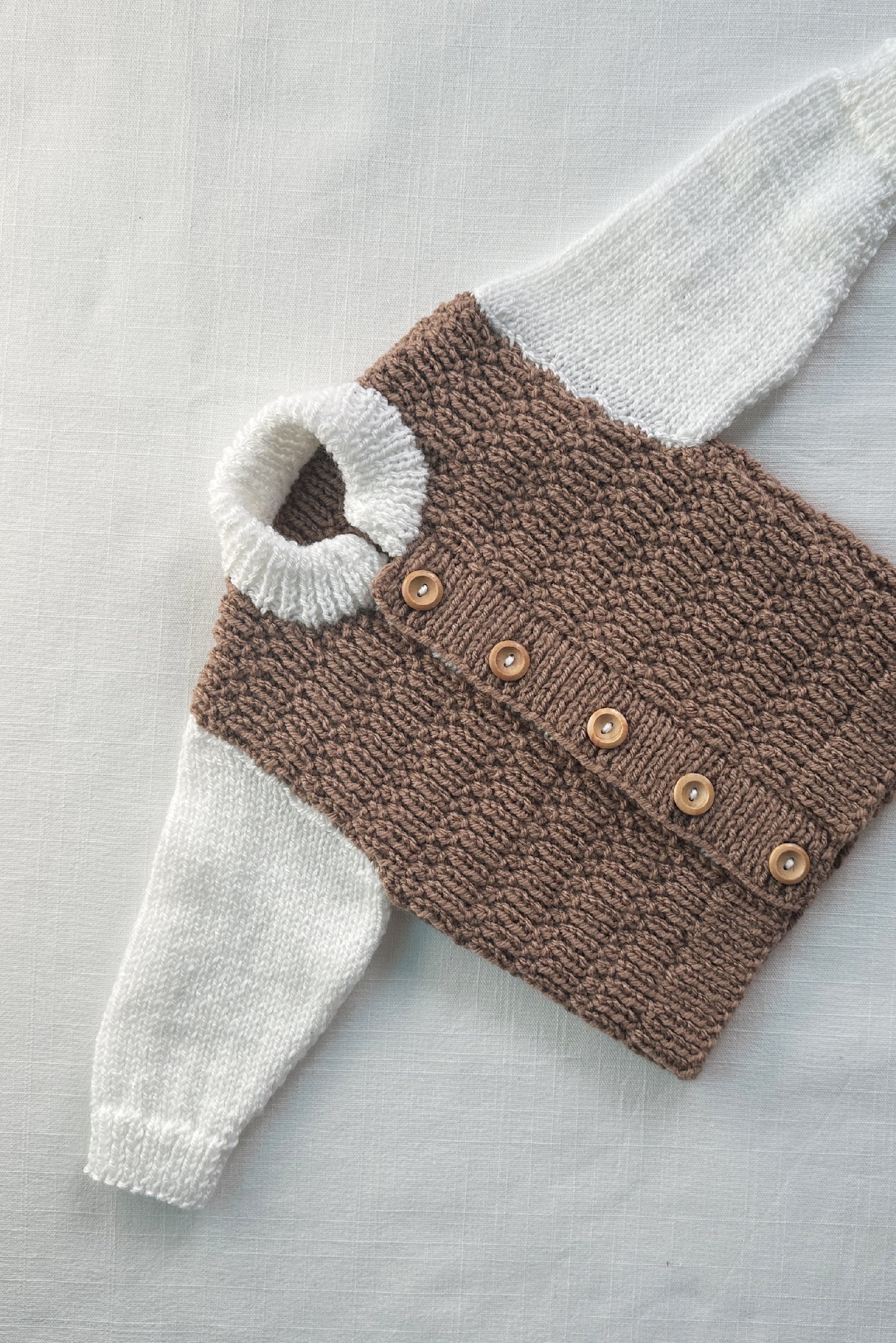 MINI: HAND KNITTED COLOUR BLOCK CARDIGAN