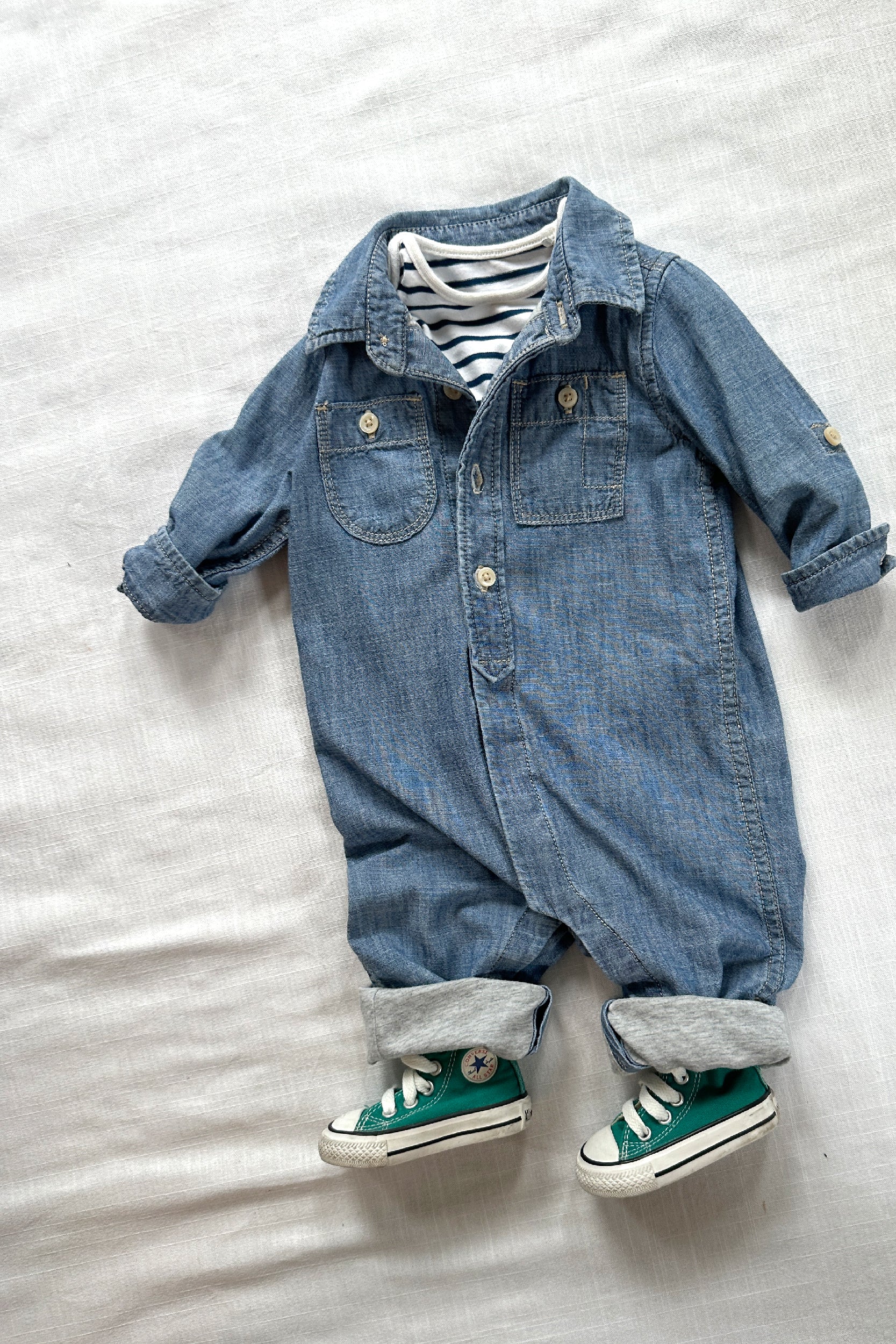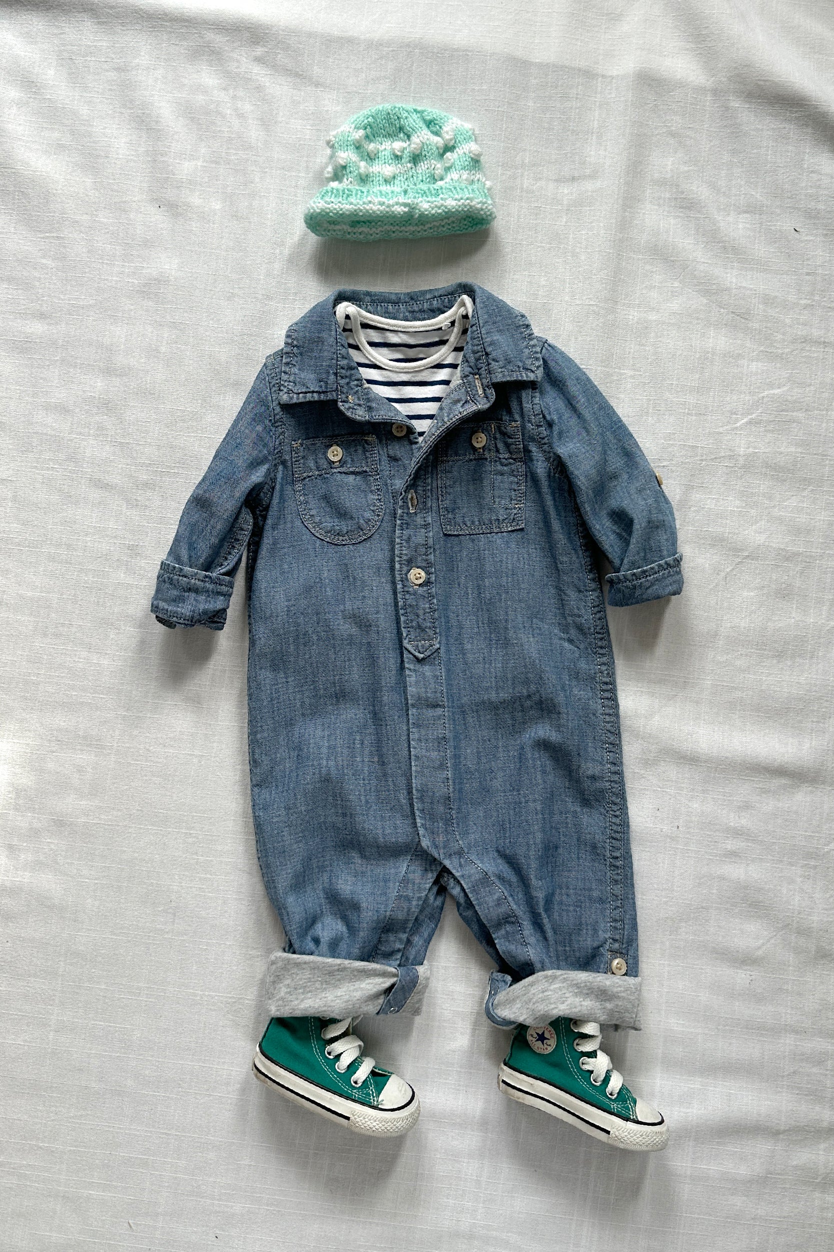 We love this styled with under these Chambray Overalls, and paired with Converse and a Beanie.