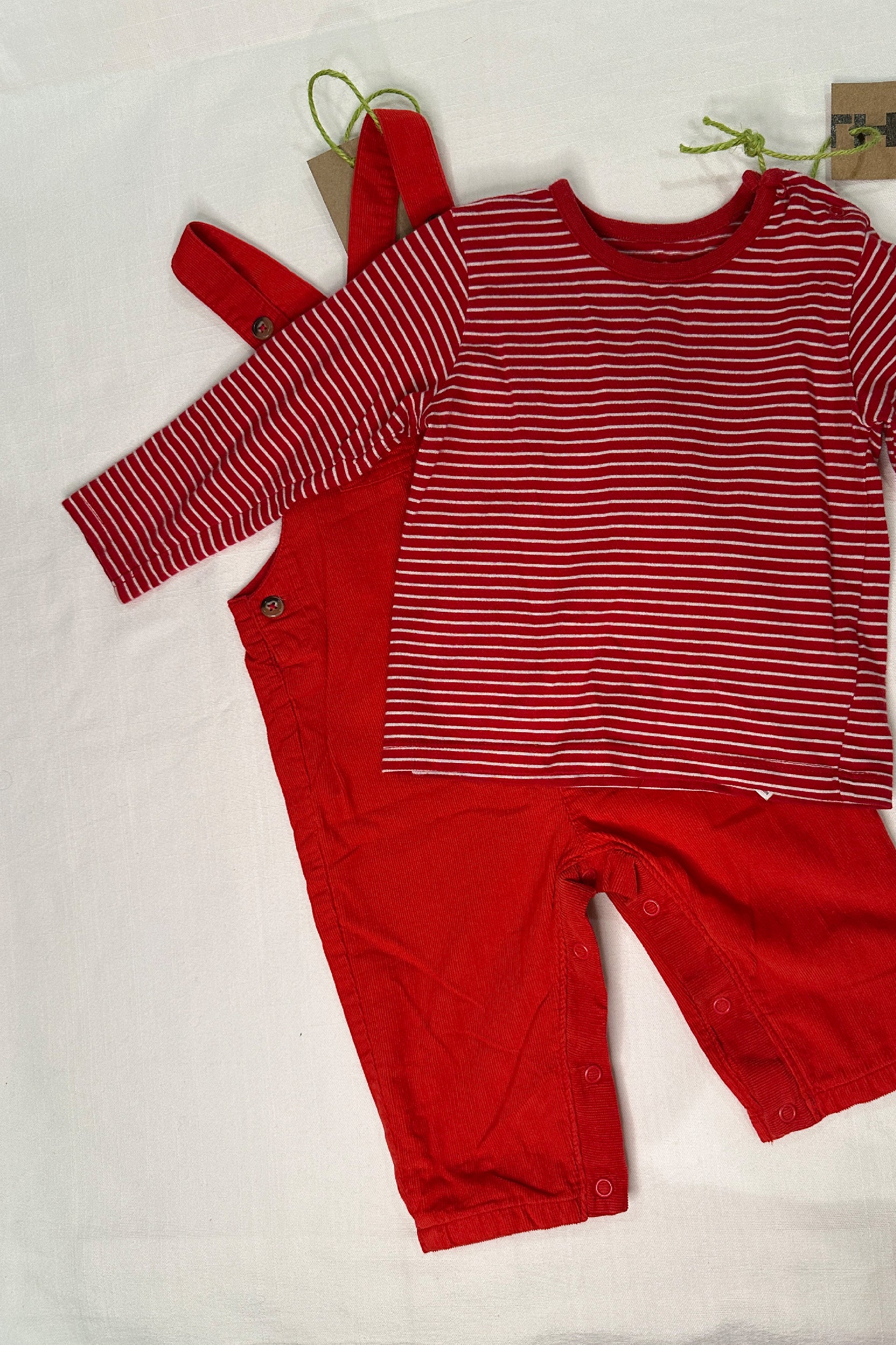 Red with white stripe, long-sleeve breton-esque t-shirt. Pre-loved, originally from M&S.