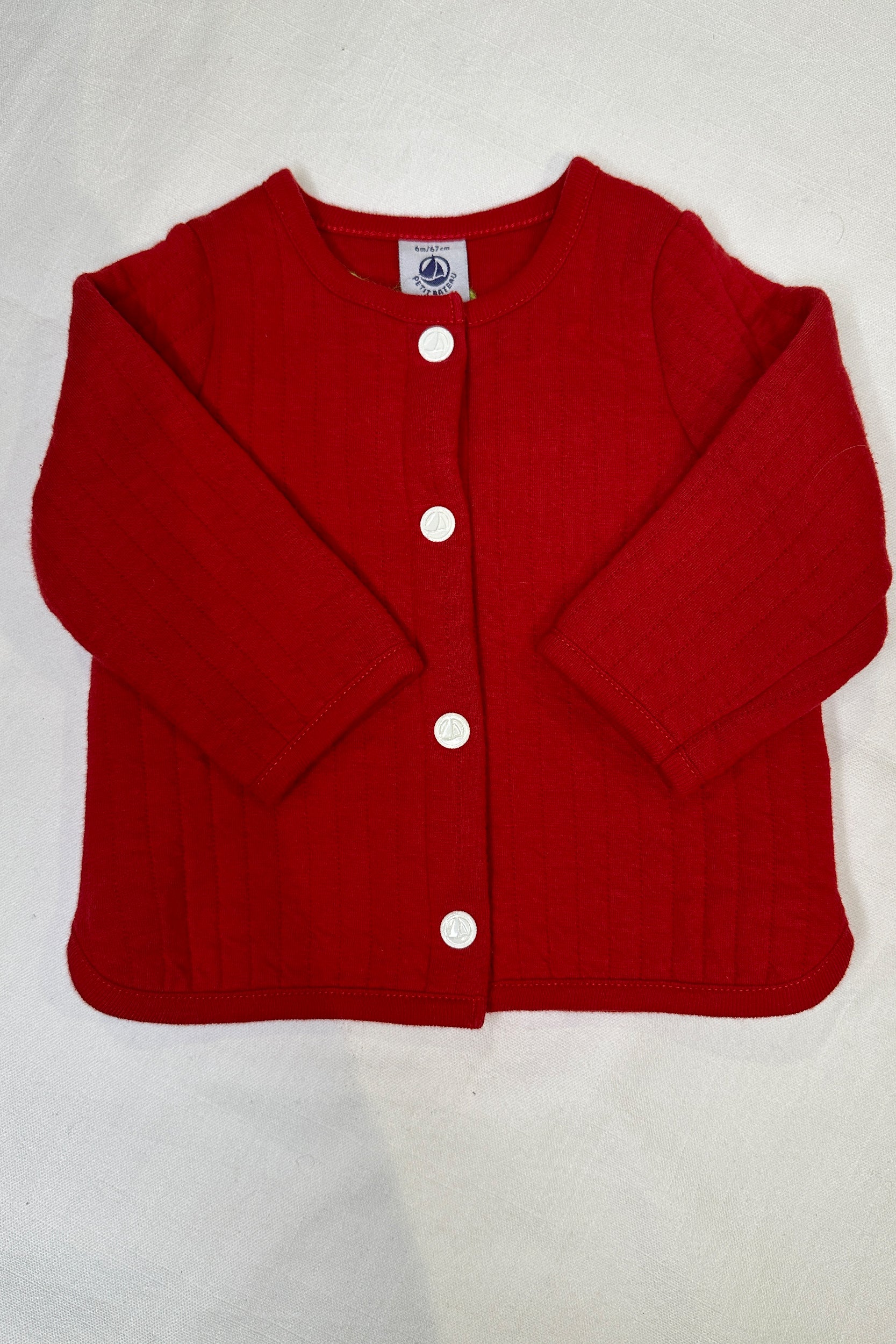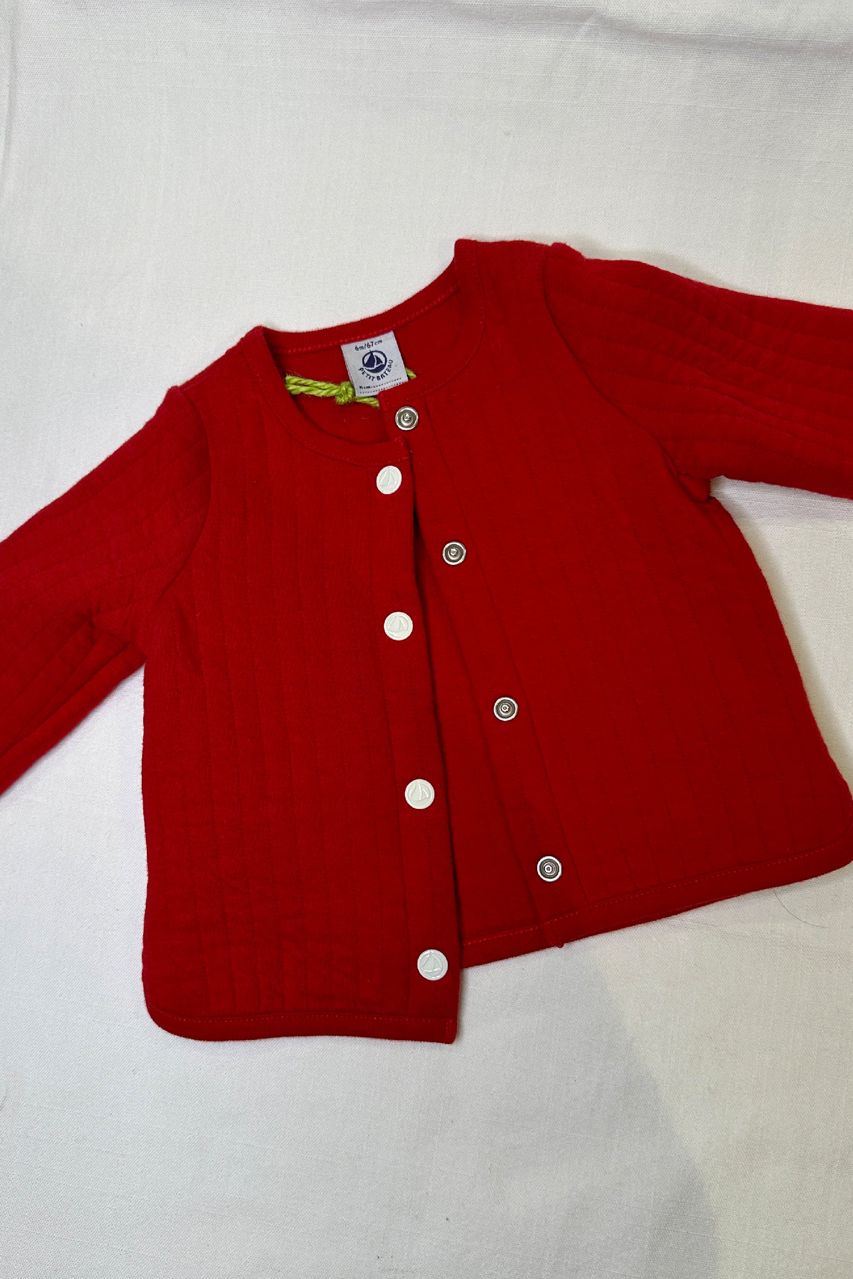 The perfect mini version of a quilted liner. Originally from Petit Bateau, this pre-loved red jersey jacket is super cosy crafted from cotton jersey, finished with a binding throughout.