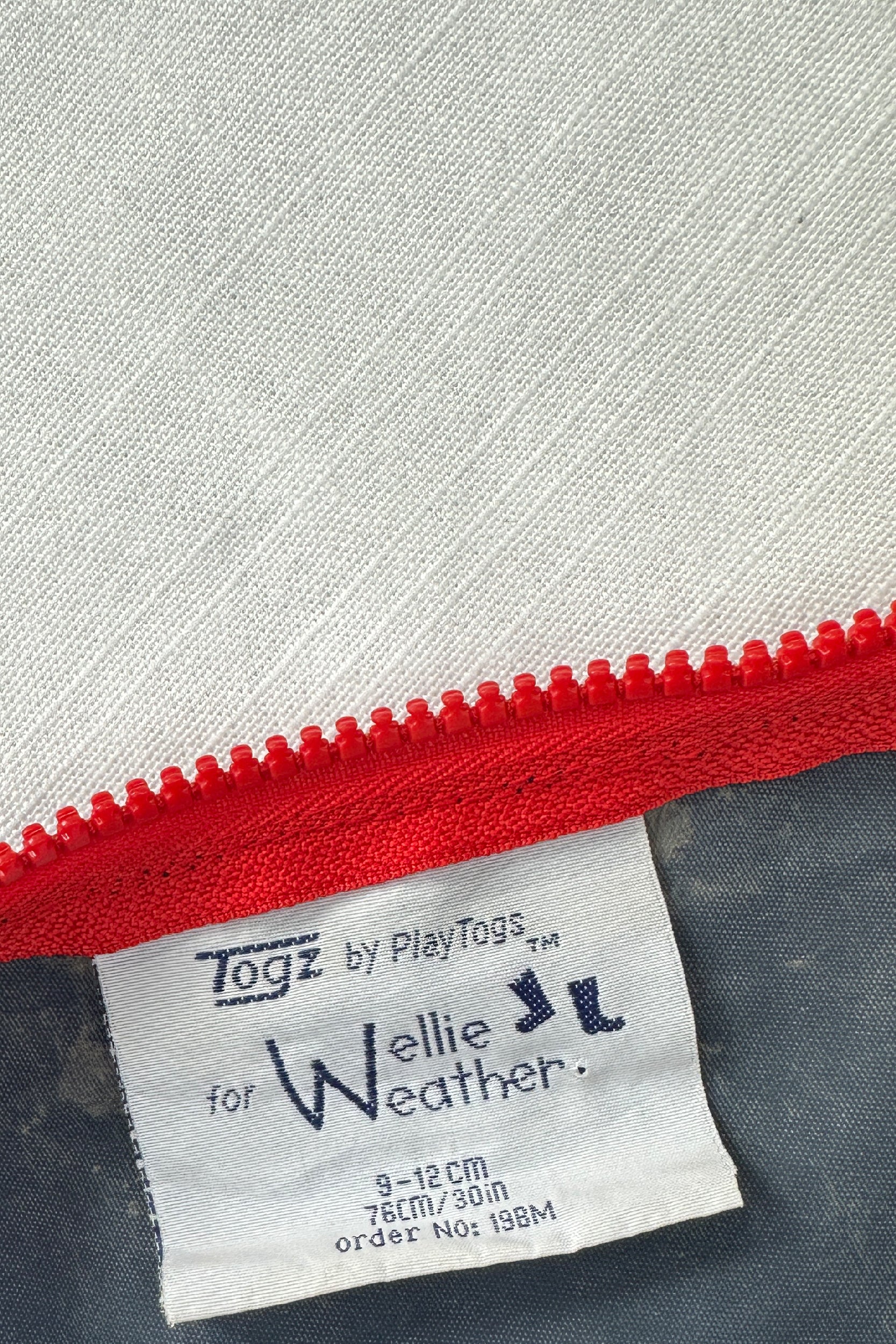 This two-tone, navy & red puddle suit is a fab wet weather garment. It features an elastic gathering on back waist, adjustable velcro on wrists and elastic stirrup for extra protection over boots. We especially love the hood which features a small peak and an adjustable velcro tab to help prevent the hood falling over the eyes and fleece detail around the face and neck.