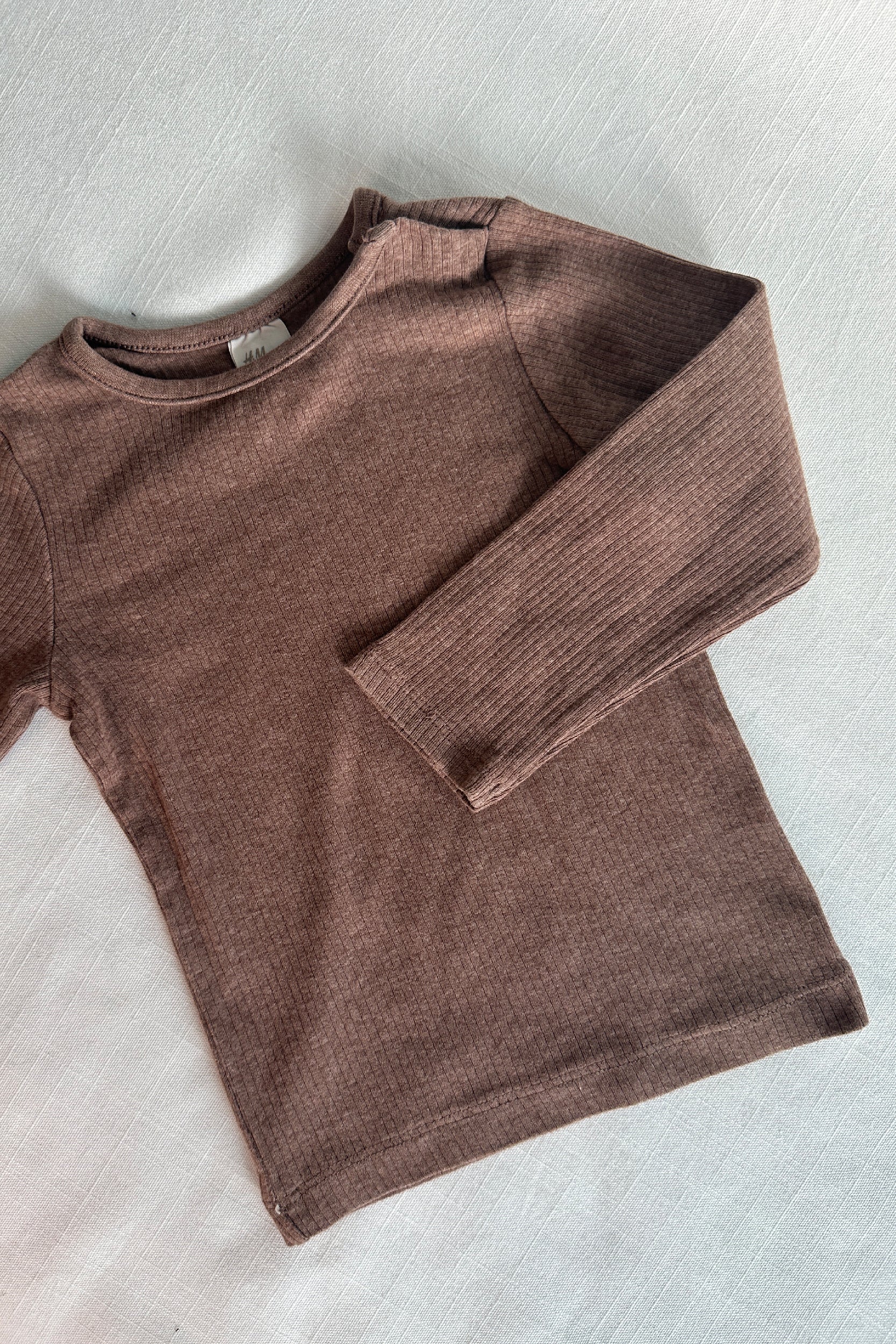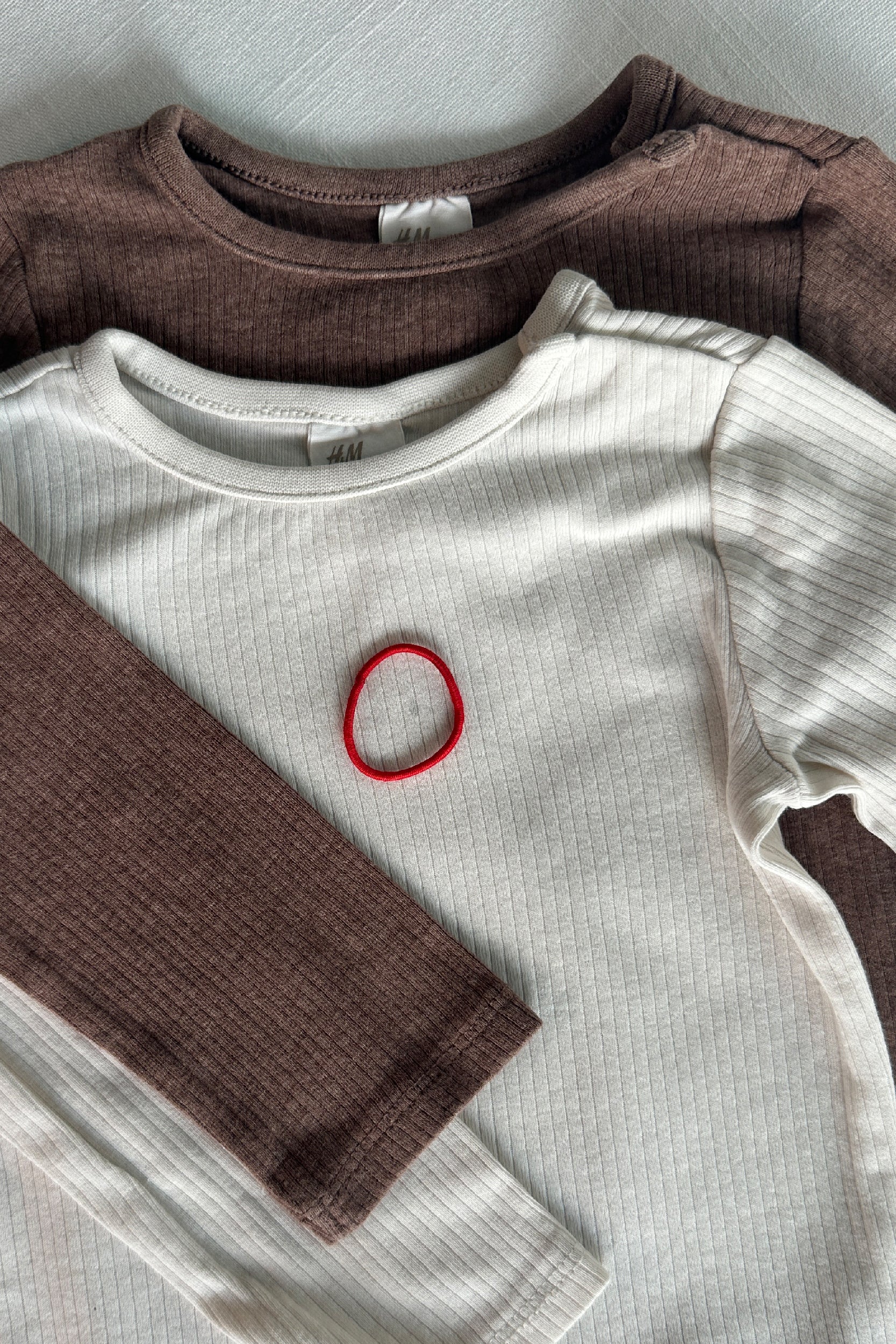 Ribbed cotton long sleeve t-shirts with snaps on shoulder for easy dressing.