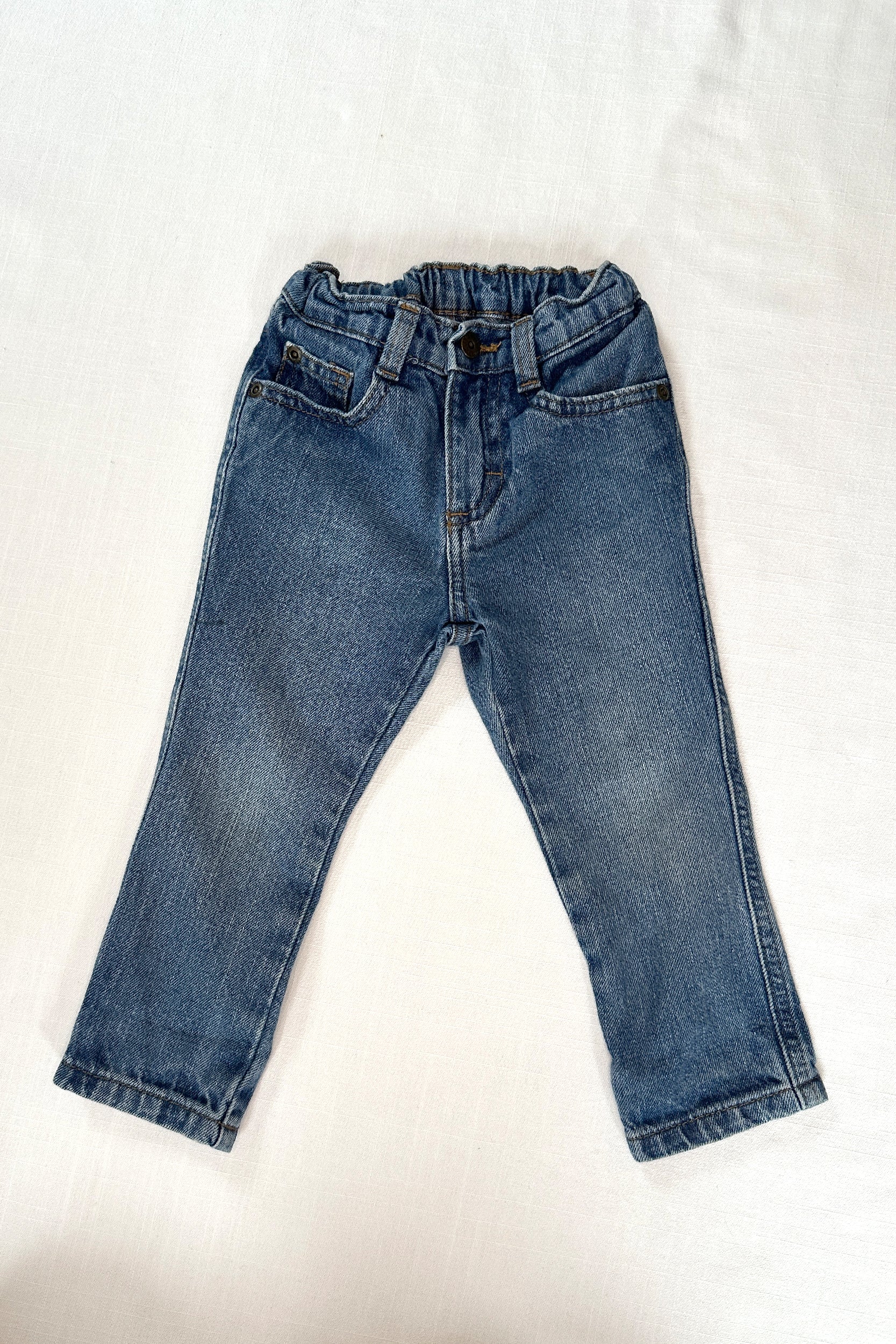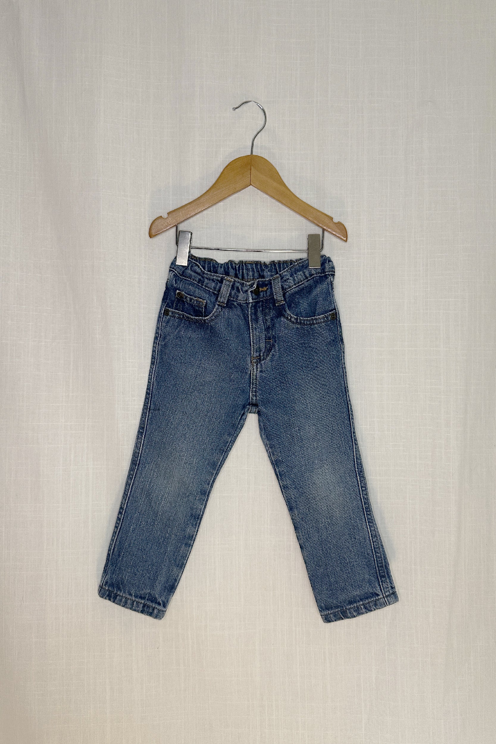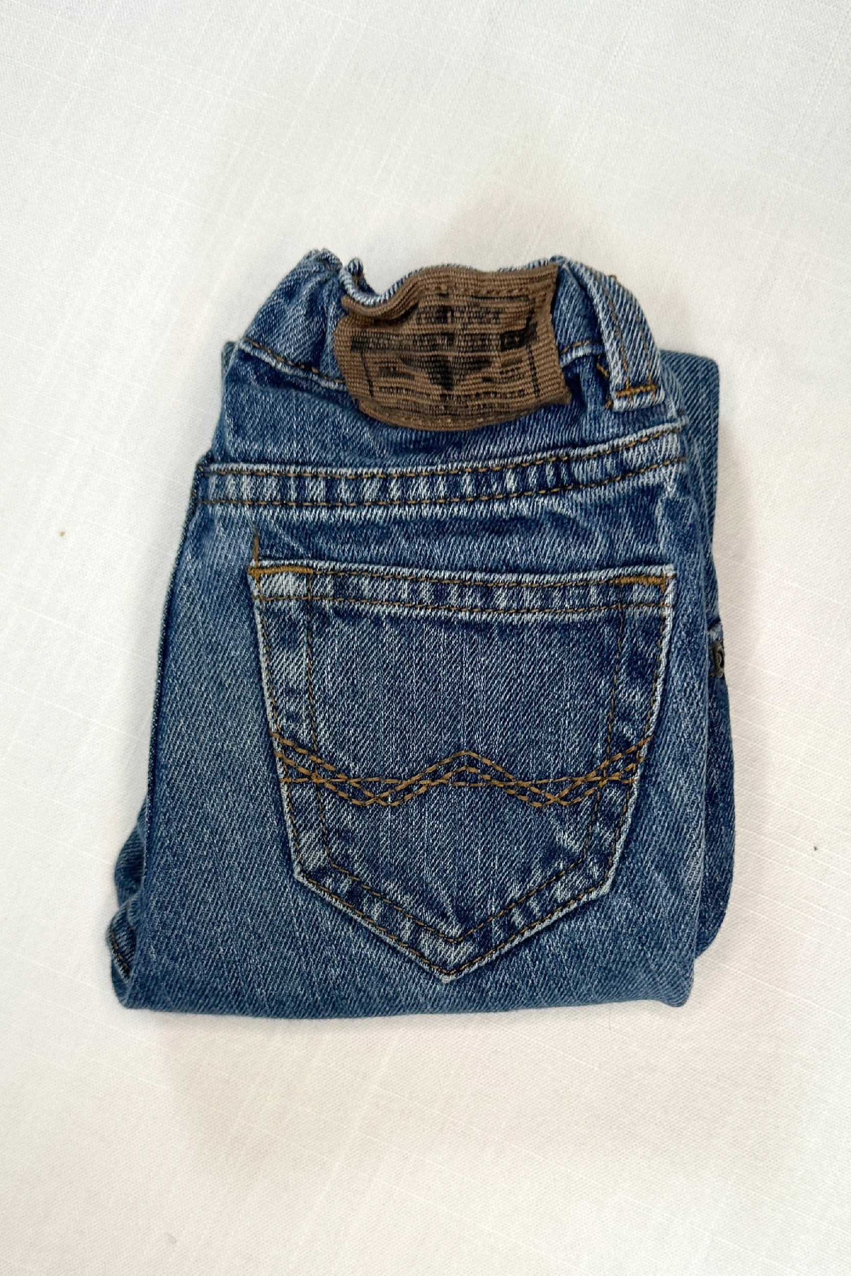 Classic Vintage Wrangler jean with lovely vintage patina. Features adjustable elastic on waistband.