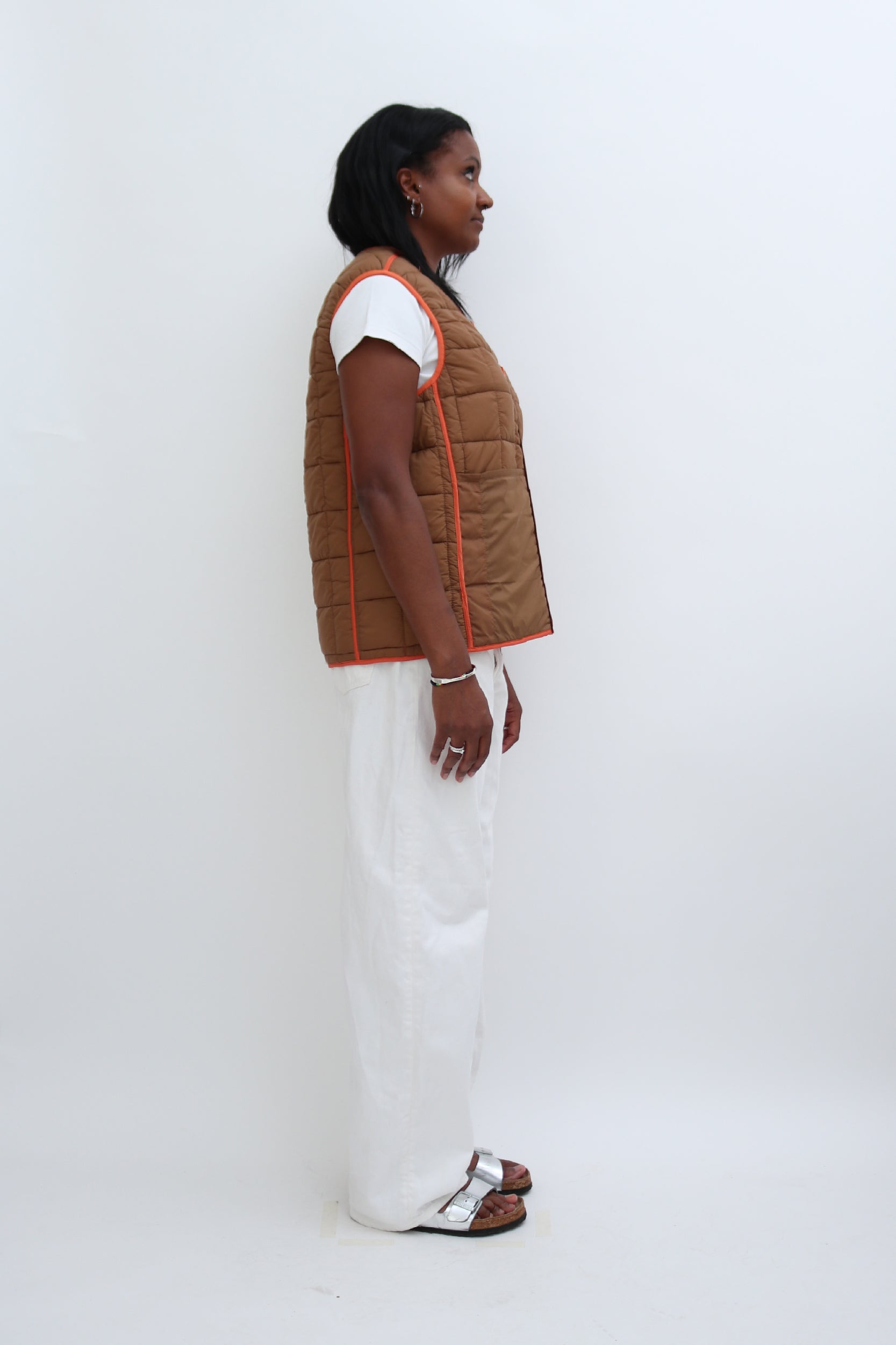 This reversible quilted gilet practical piece to add to your autumn/winter wardrobe. Cut from lightweight, rain resistant shell with light insultation and quilting detail. Wear it layered or on its own, also features to patch pockets for added practicality.
