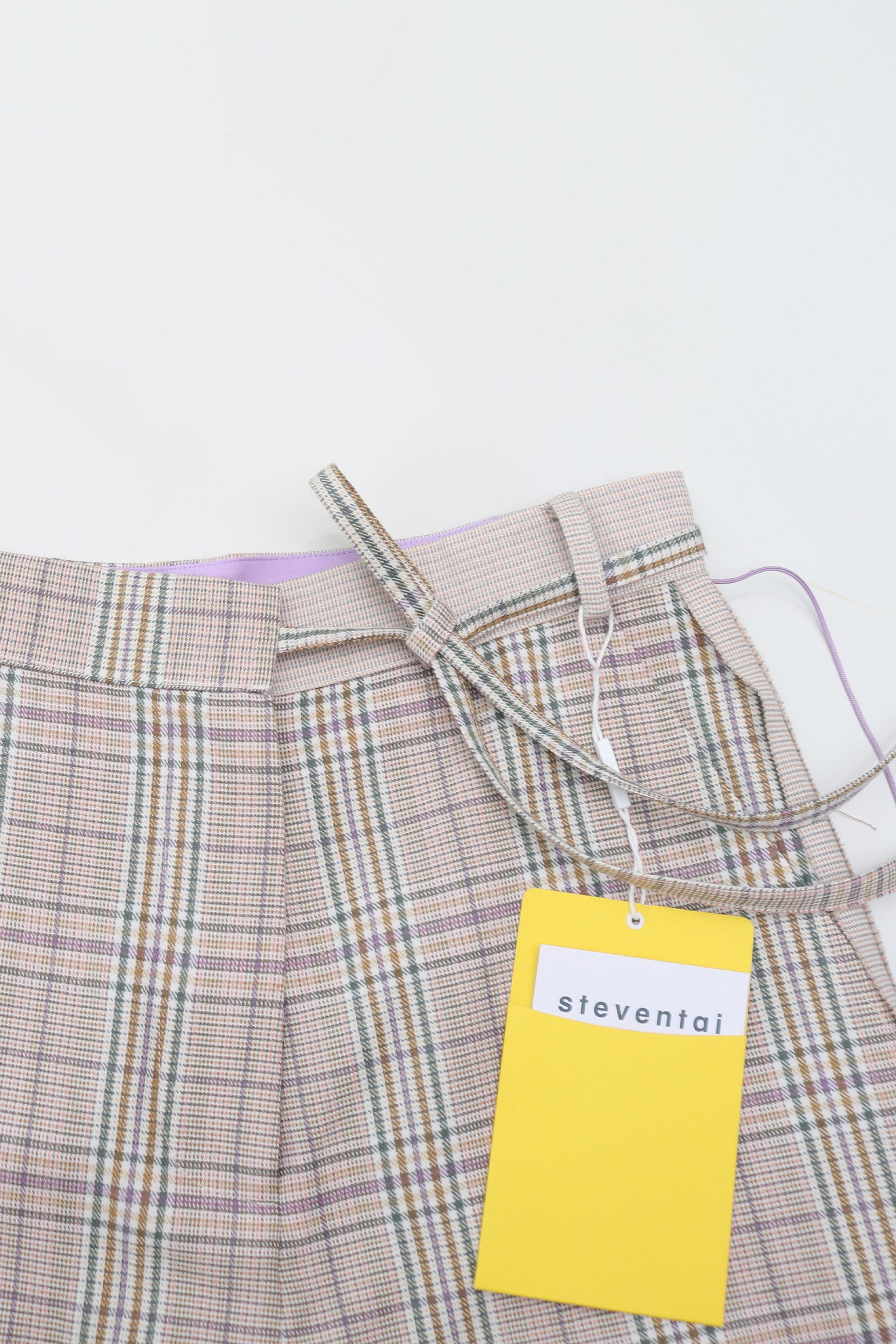 A suit with added versatility is one way to describe this gorgeous suit from Steventai. With a contemporary oversized blazer shape and statement wide leg trouser, both crafted in a pastel check, it’s a great option for any occasion. Both pieces can be worn as separates, with the blazer being reversible to reveal a colour-block pastel lining.