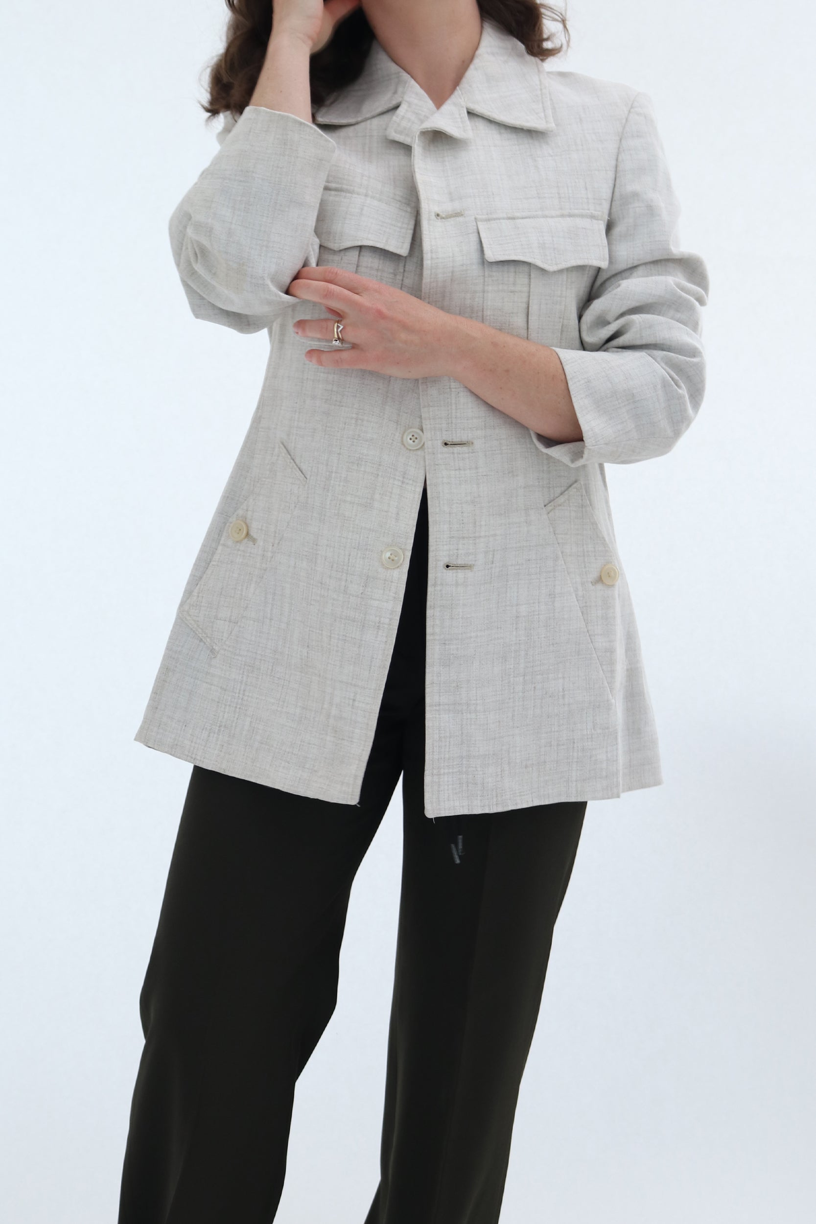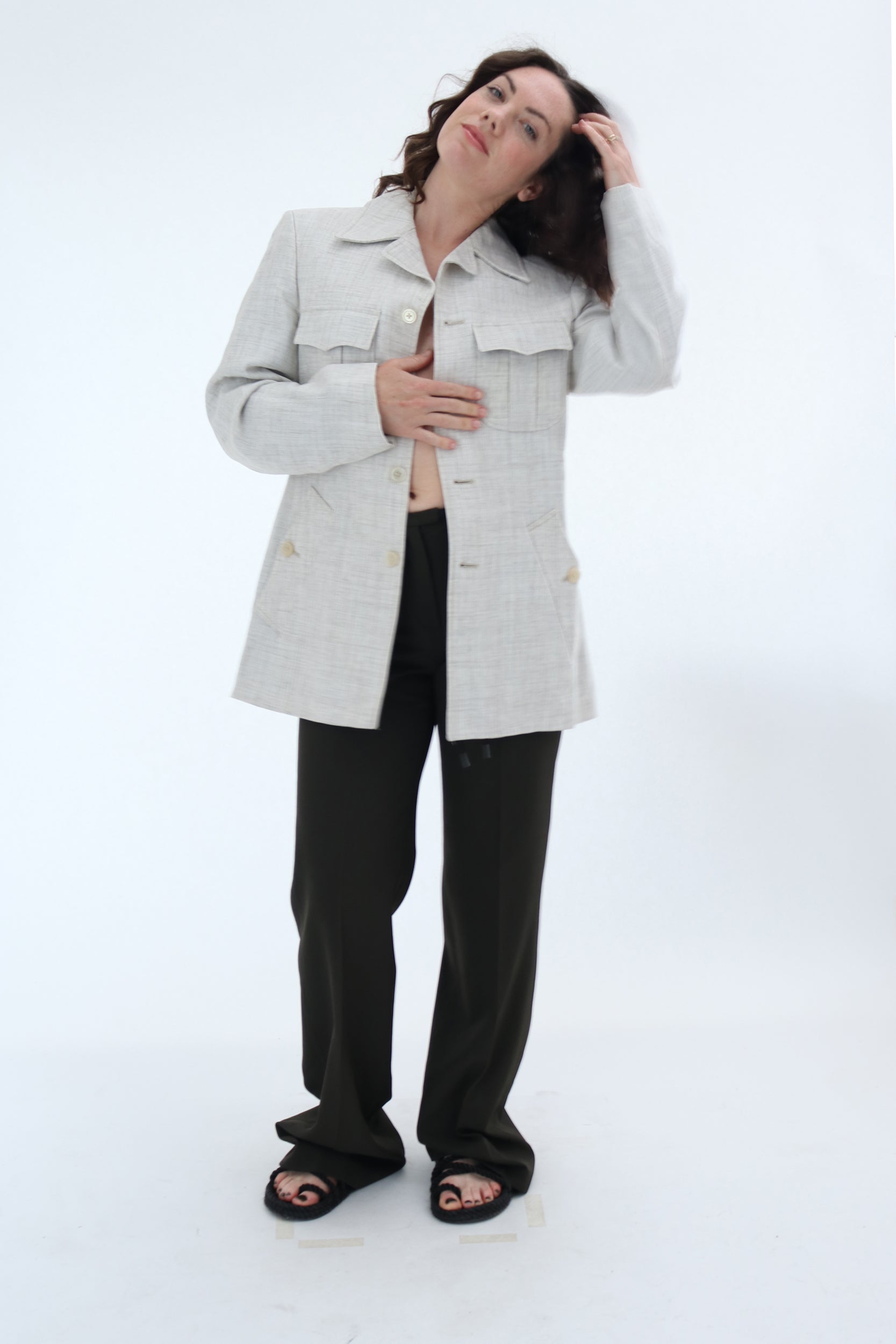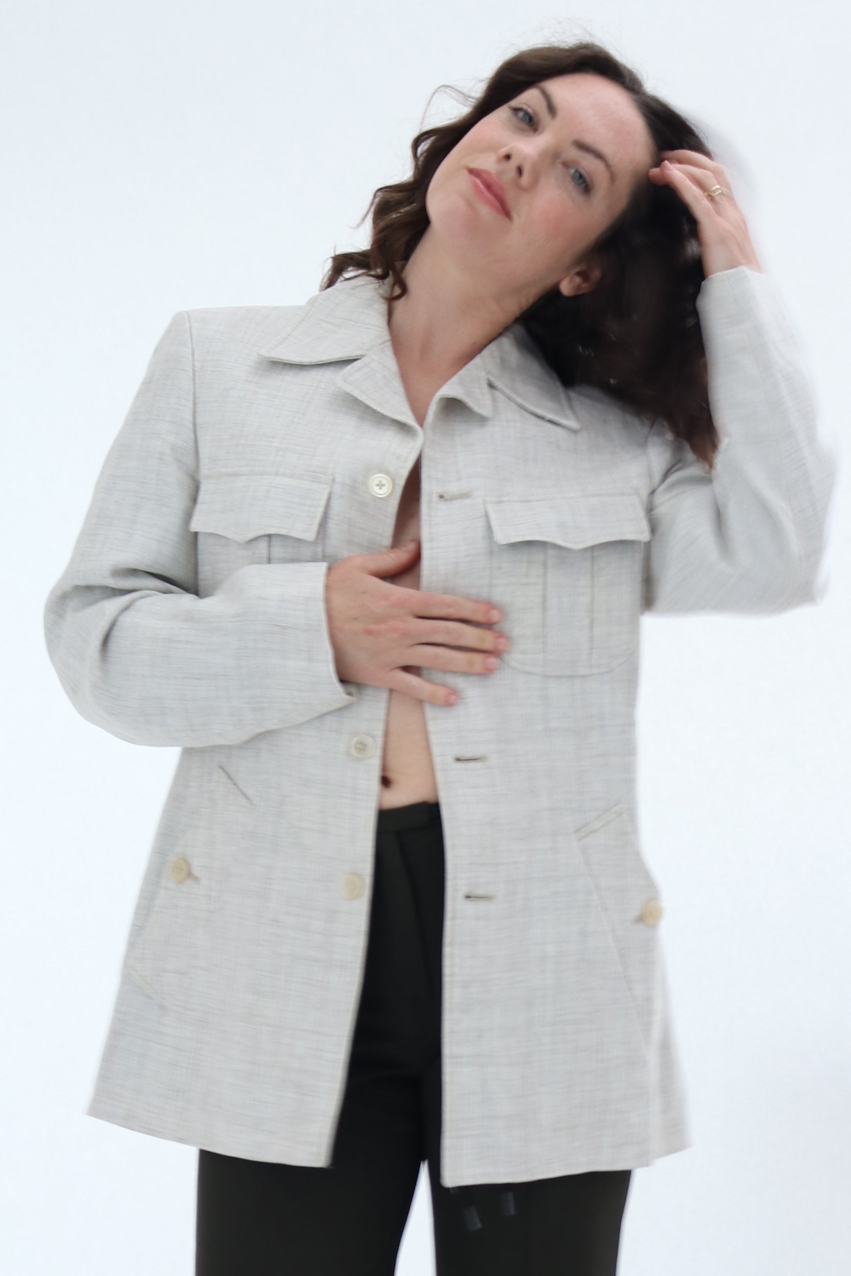 This vintage 70s safari jacket is a vintage keepsake with the most original features. Crafted from a soft , the blazer features safari style pockets which add a casual element to the jacket, making it the perfect smart casual piece.