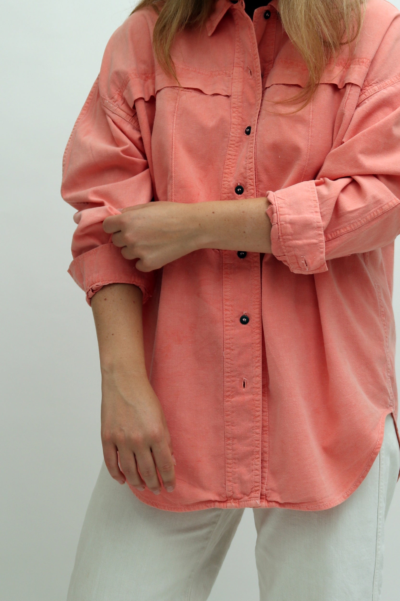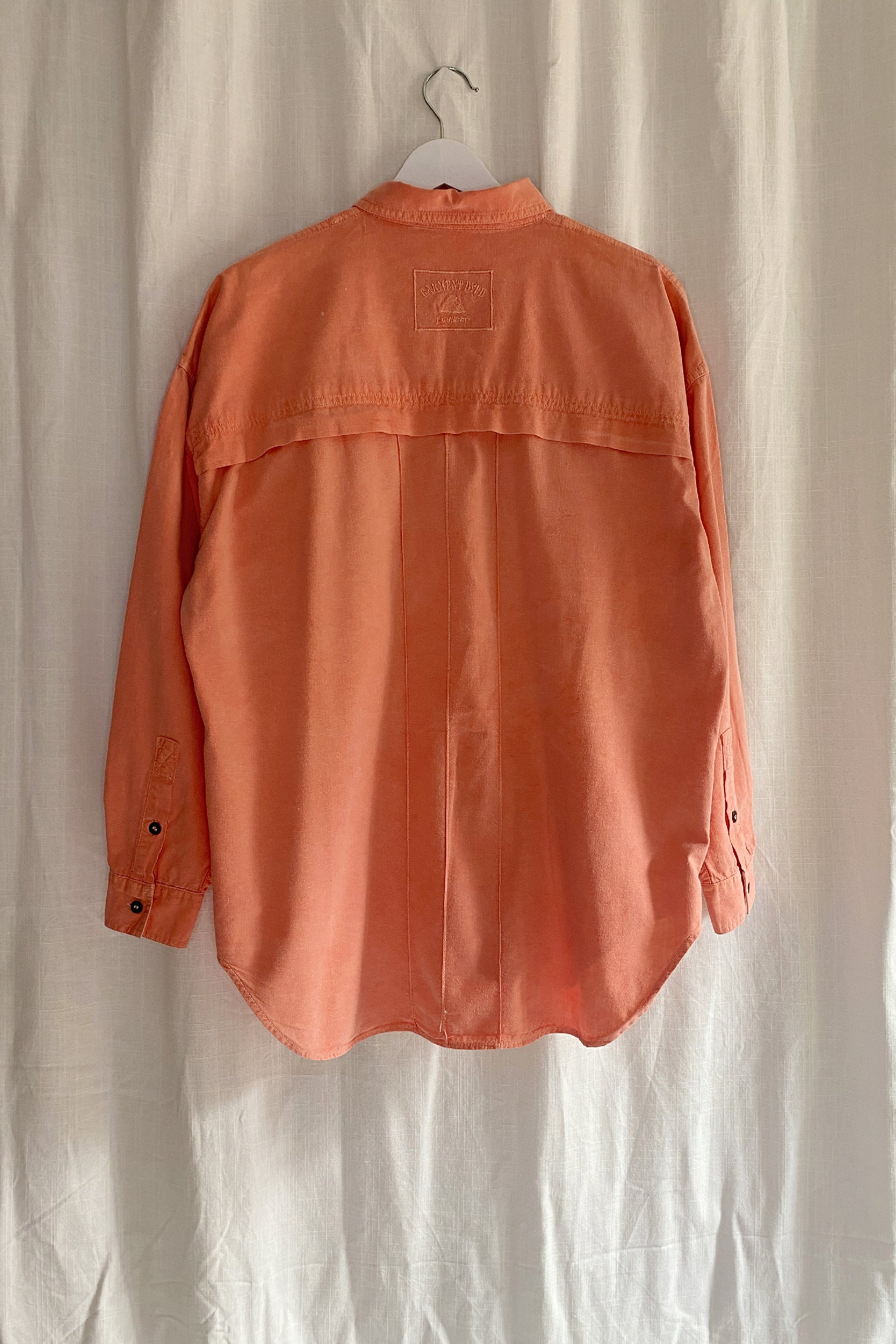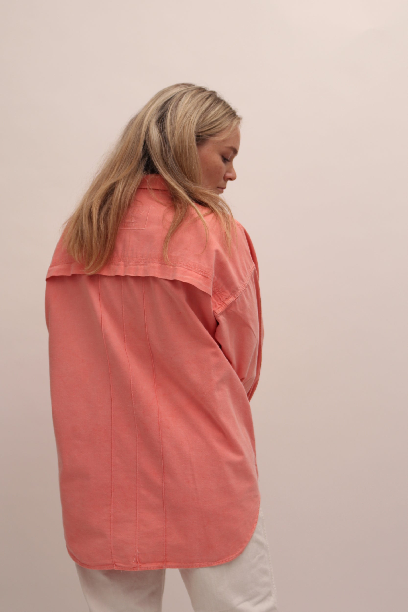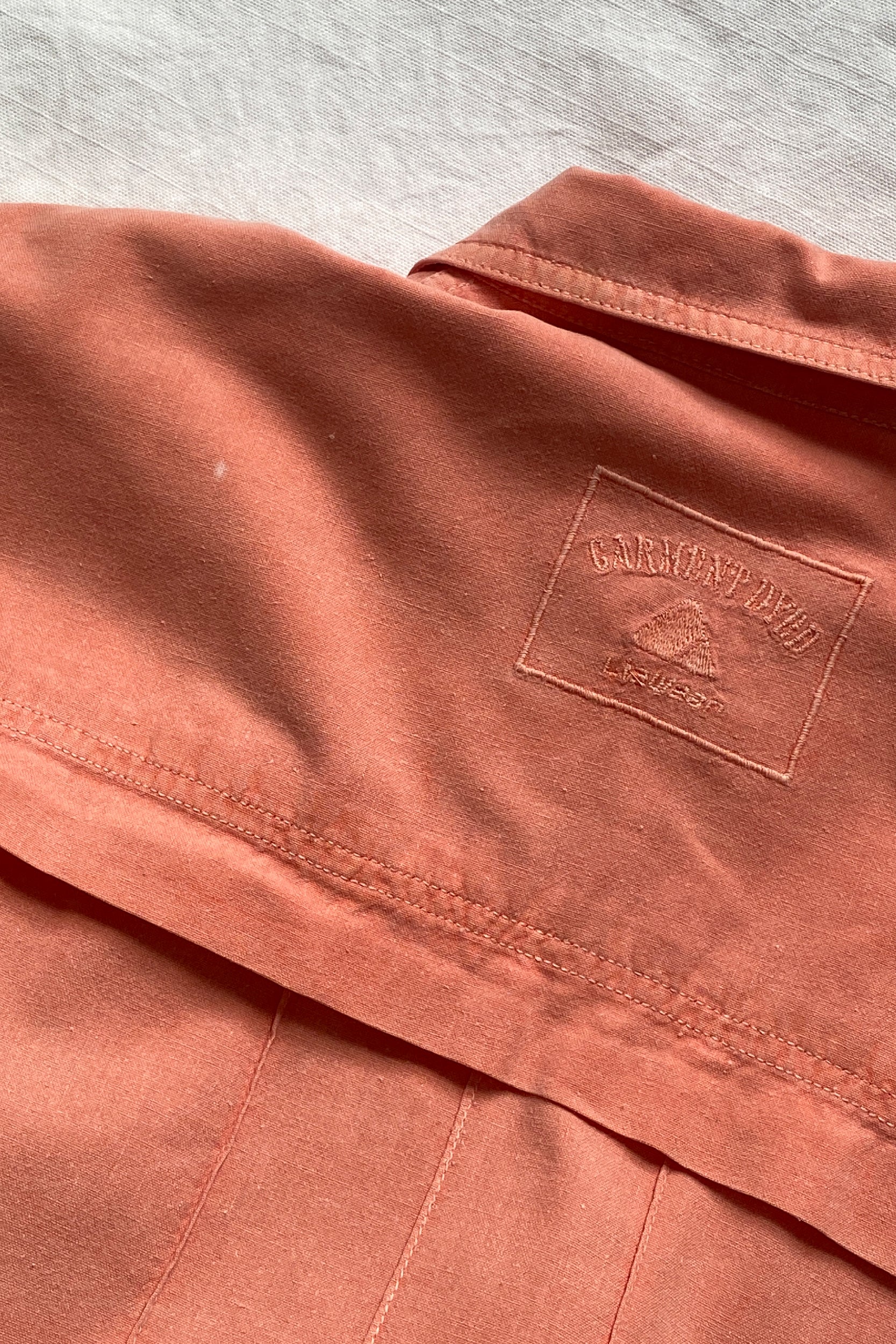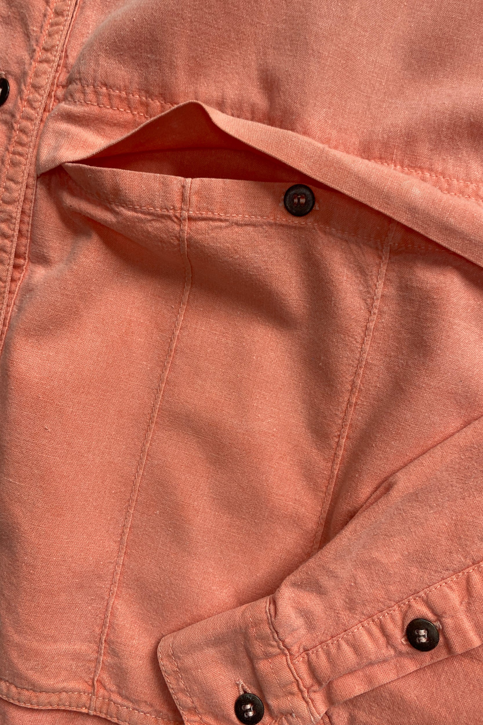 True vintage cotton overshirt with beautiful design details such as the original brand embroidery, utility pockets and pin-tuck stitching. This coral tone, mid-weigh cotton has a beautiful patina showing signs of a life well lived.