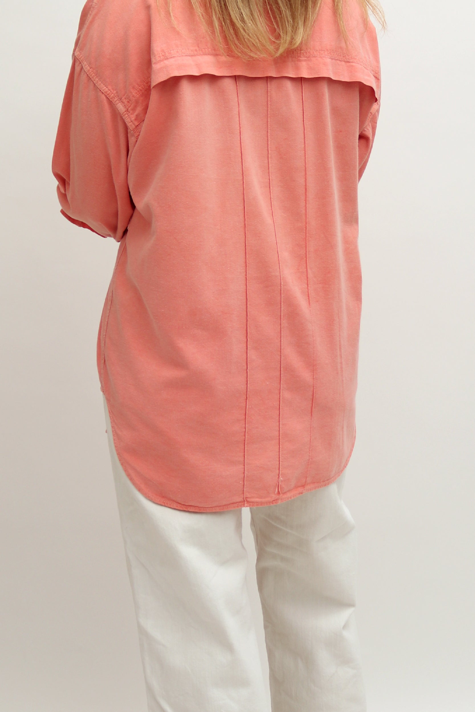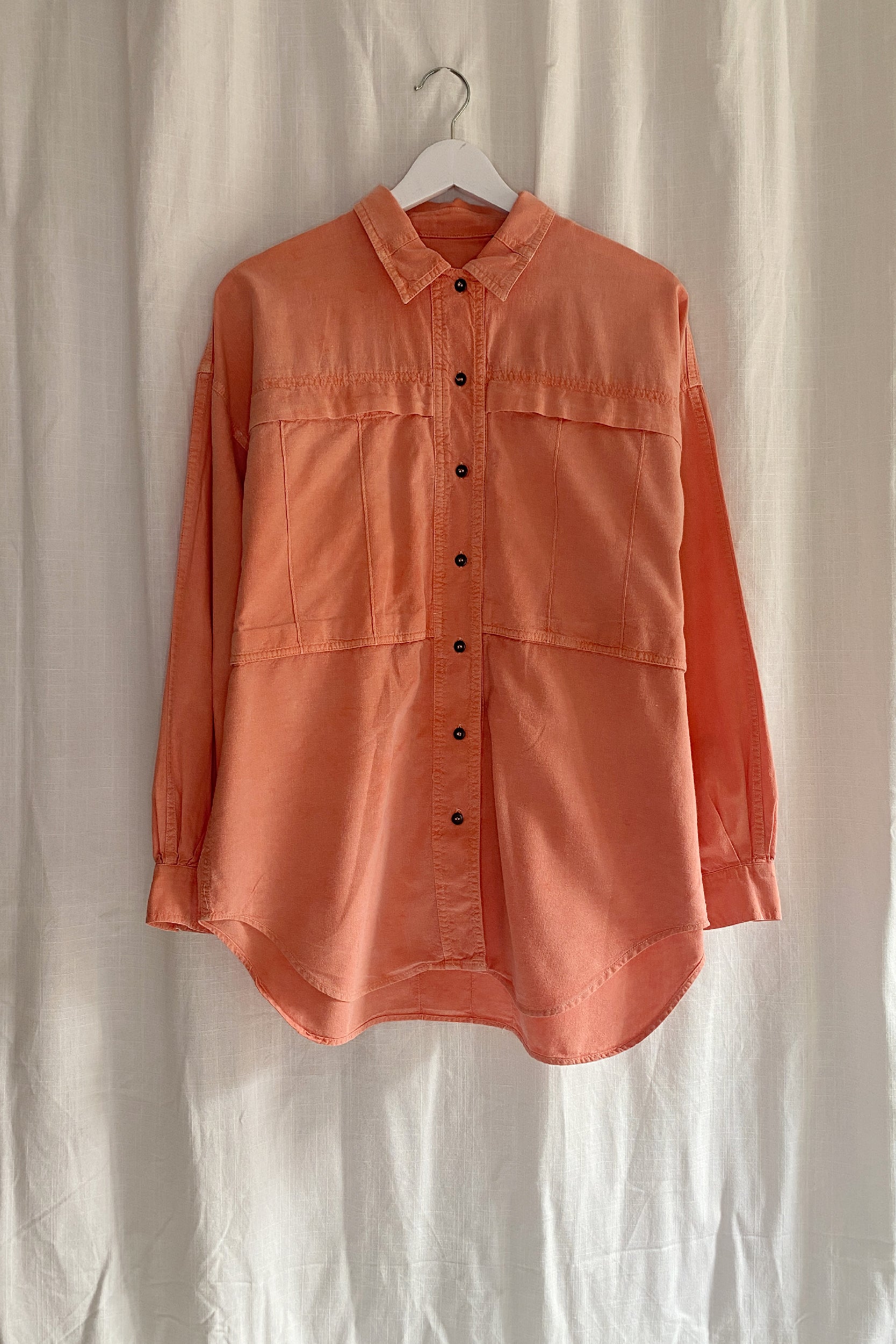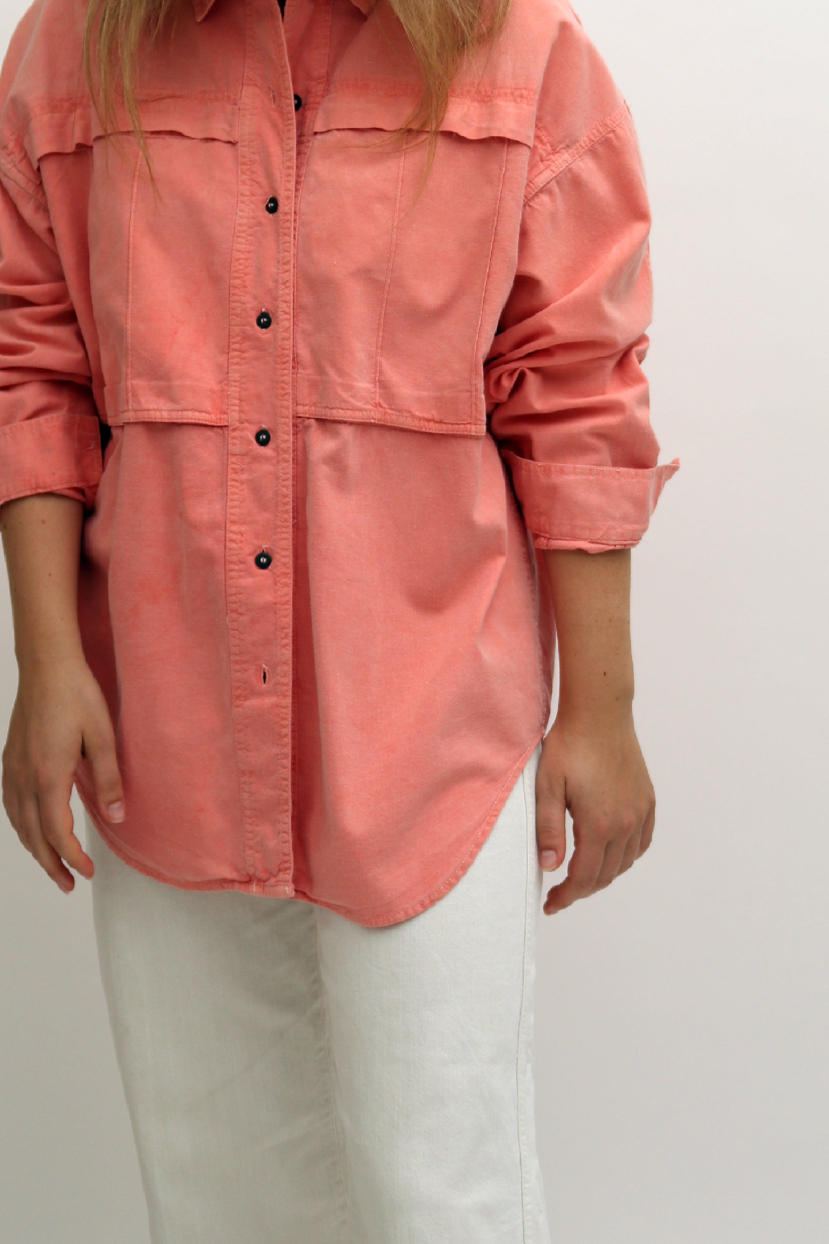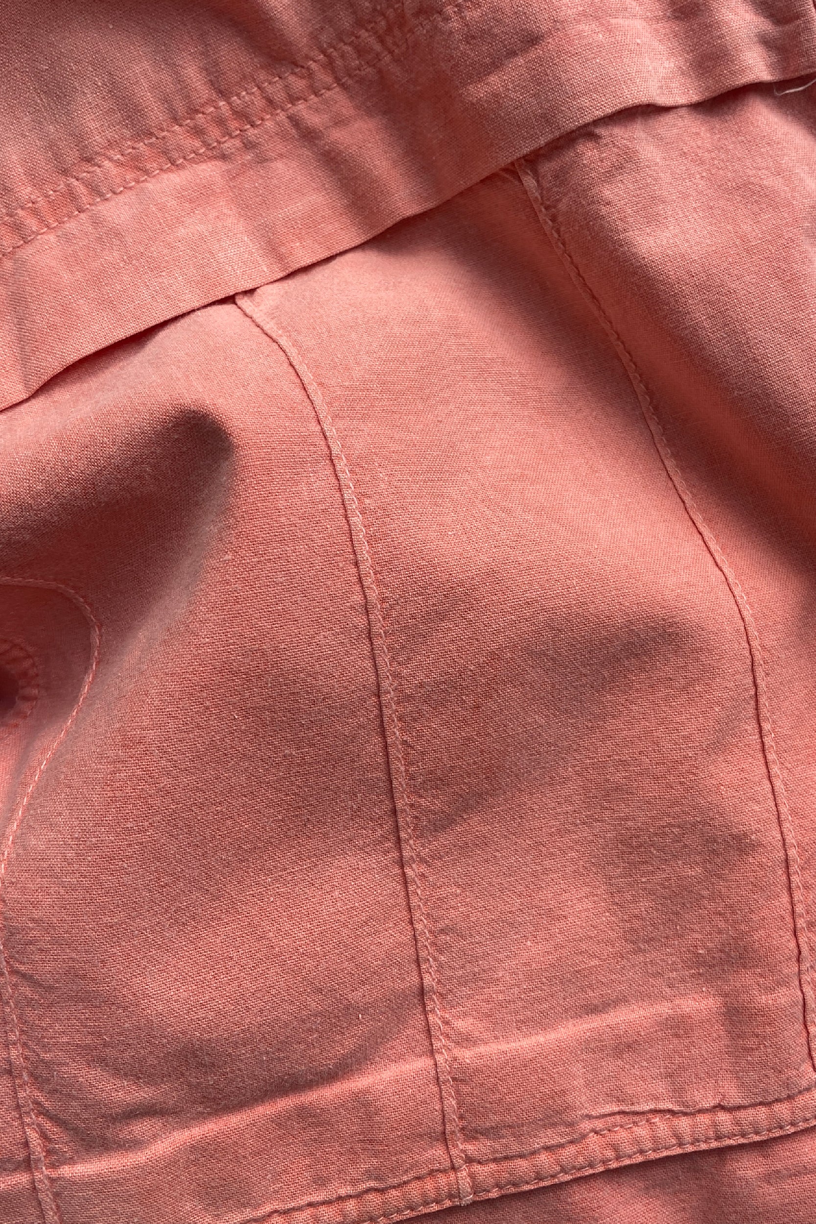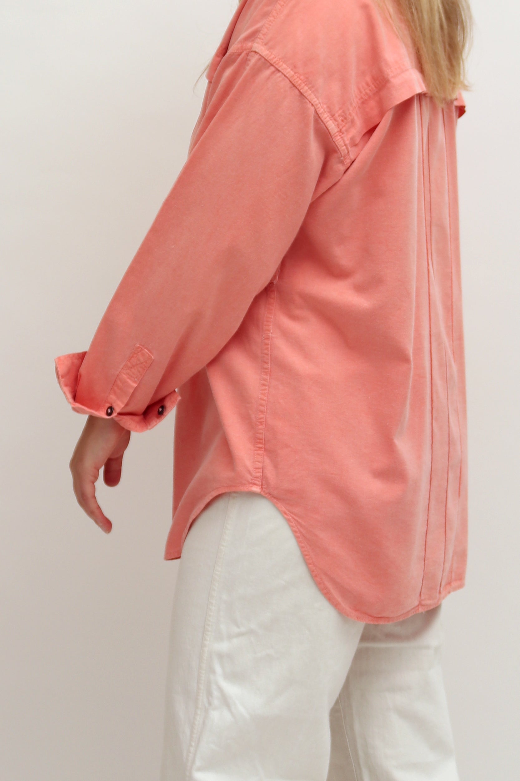 True vintage cotton overshirt with beautiful design details such as the original brand embroidery, utility pockets and pin-tuck stitching. This coral tone, mid-weigh cotton has a beautiful patina showing signs of a life well lived.