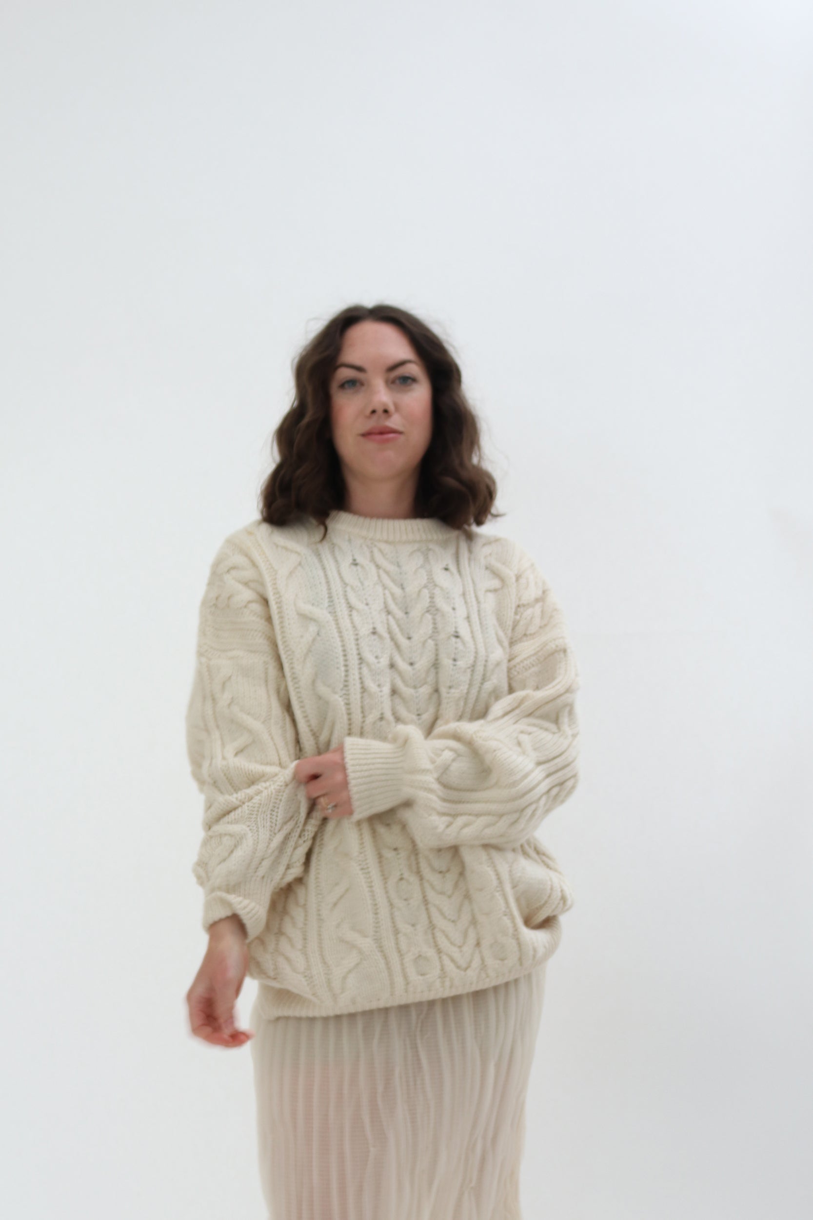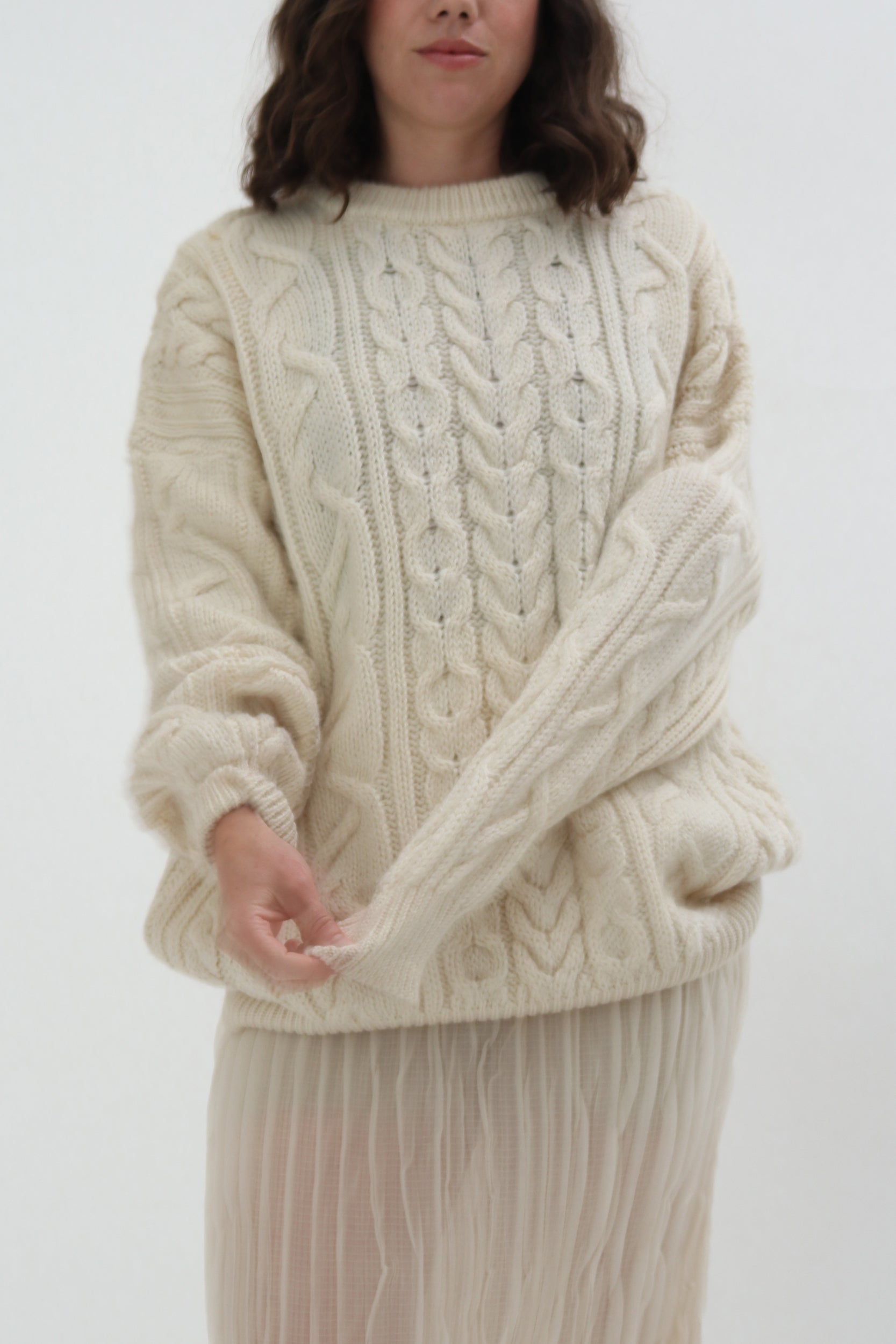 VINTAGE CREAM CABLE KNIT ARAN SWEATER