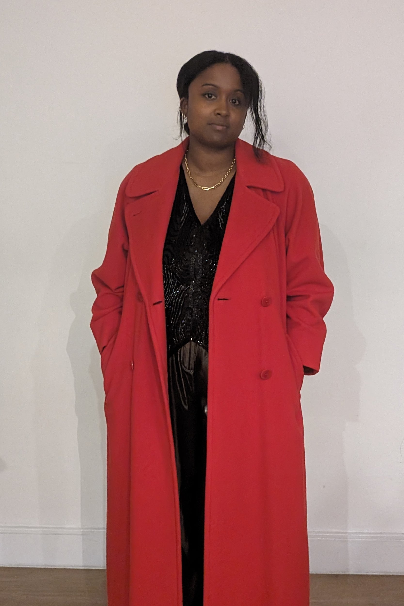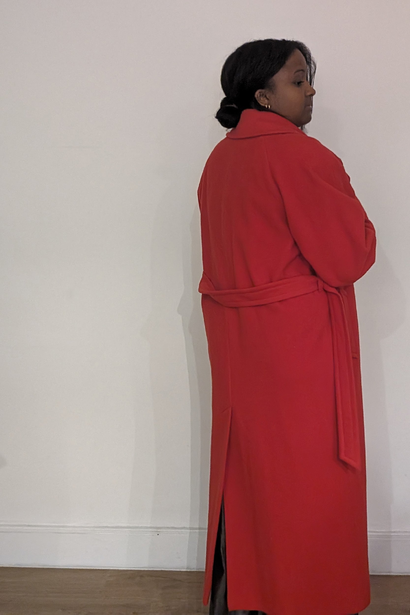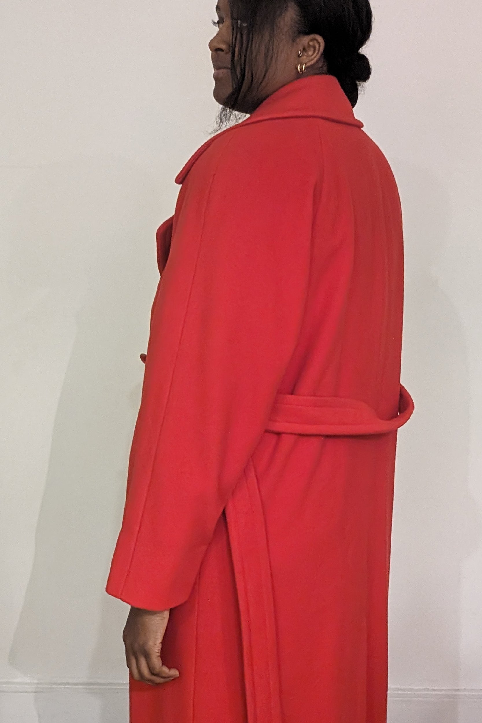 This vintage red coat is a timeless classic. Cut from a cashmere wool blend in a statement scarlet shade of red, it’s a beautiful tailored piece that has an effortlessly relaxed silhouette and considered design details.