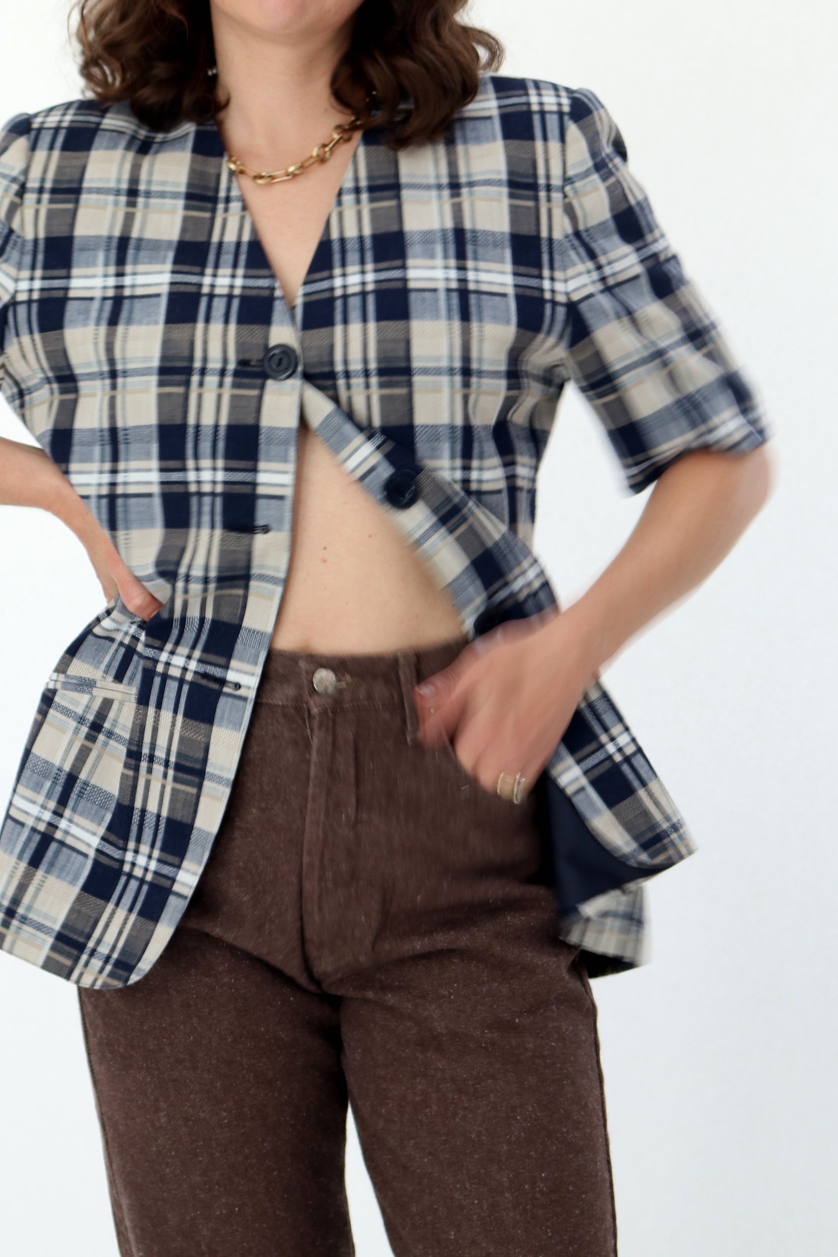 This vintage short sleeve jacket, is a versatile piece that will add a unique element to any outfit. Cut for a regular fit, with a statement checked pattern, it has lovely vintage design details.