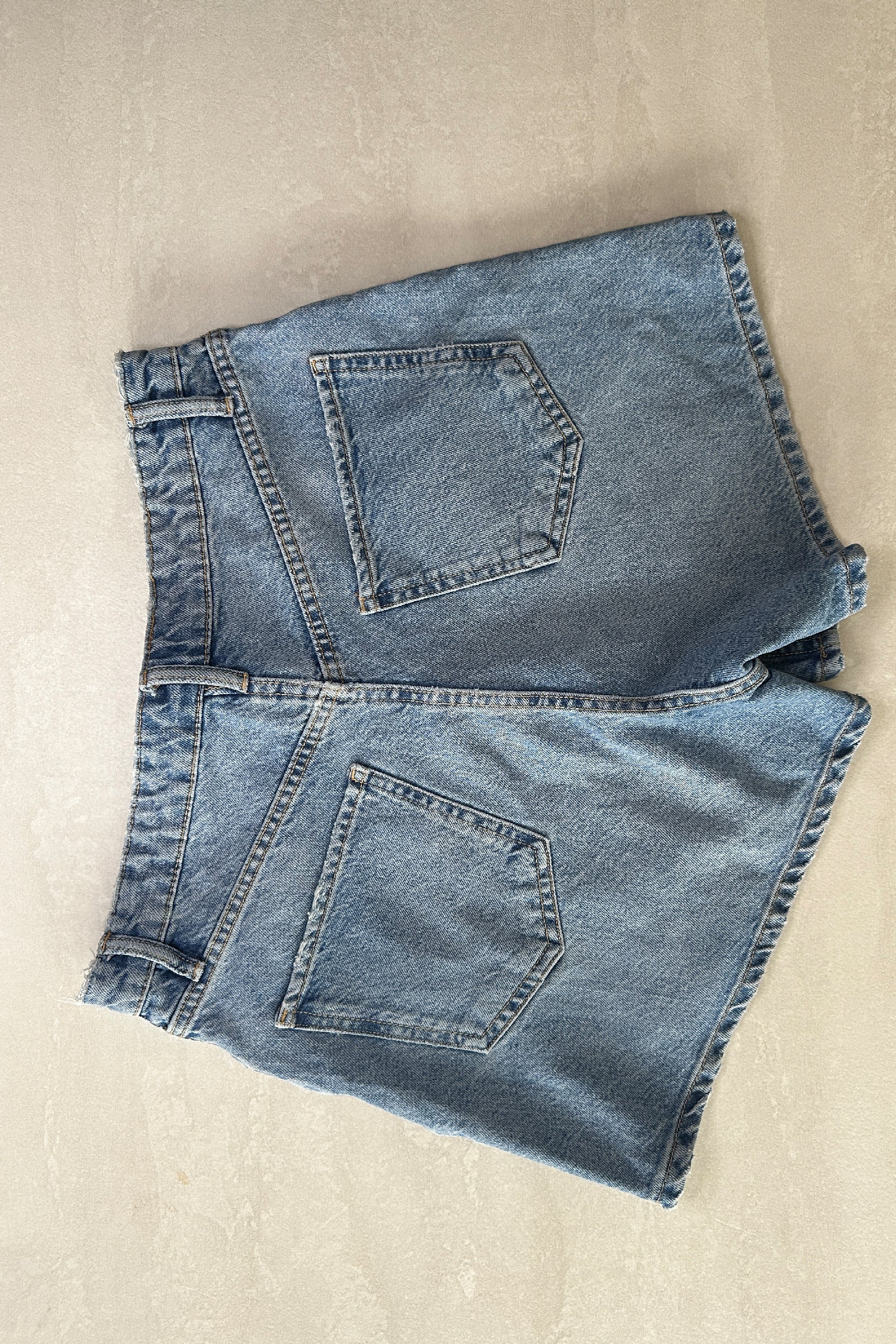 VINTAGE-WASH, HIGH-WAISTED DENIM SHORTS