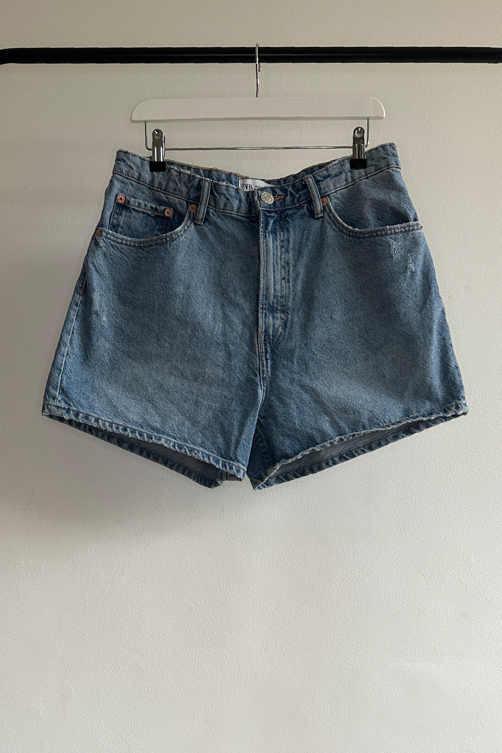These vintage-wash denim shorts are a summer wardrobe staple. Cut to accentuate the waist, the shorts are a regular fit and high rise, making them a great comfortable summer piece.