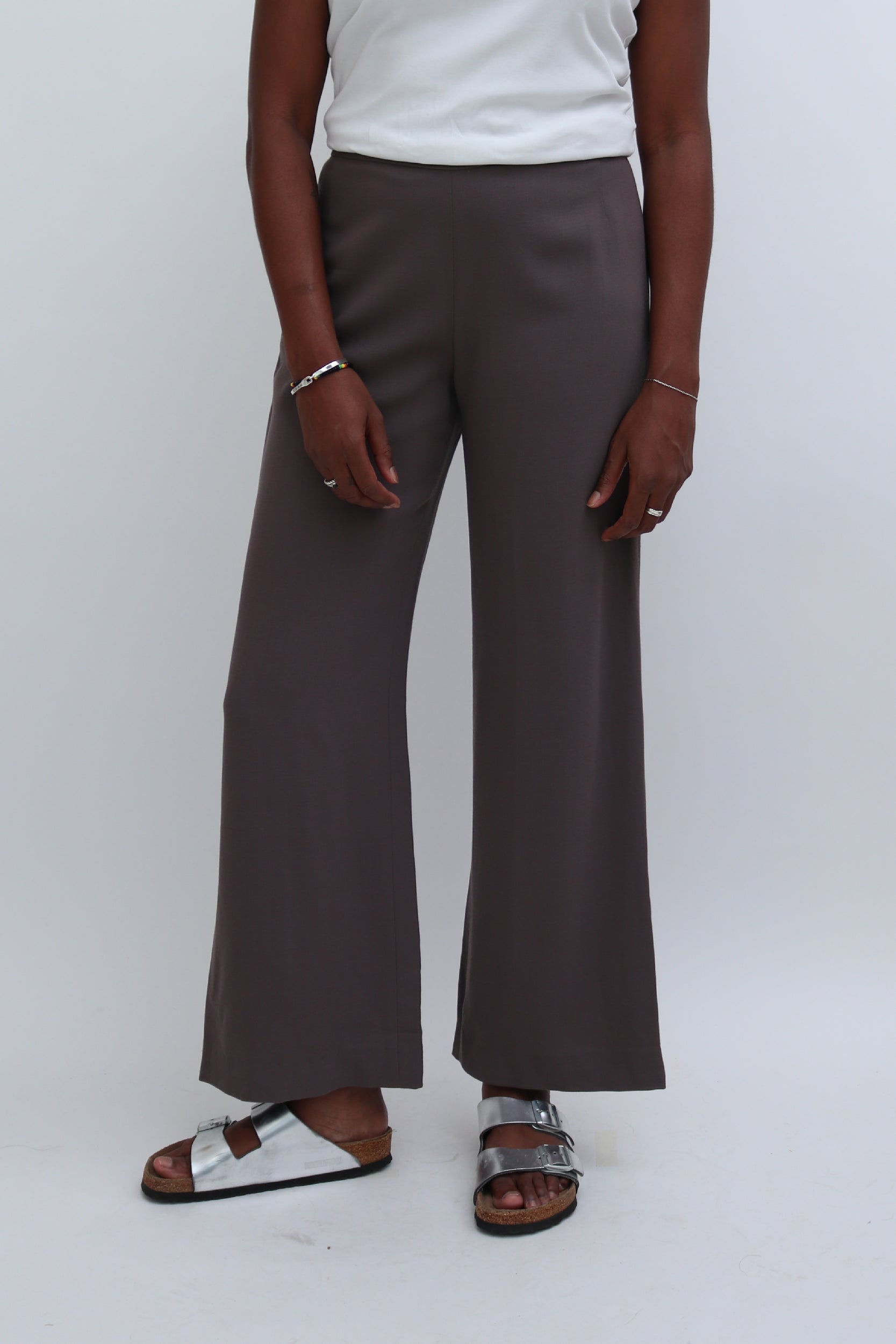 Add an autumnal shade into your wardrobe with these vintage wide leg trousers in a gorgeous rose-tinted taupe hue. Cut for a comfortable mid rise, the trouser is a relaxed wide leg shape that looks great paired with winter knits and boots.