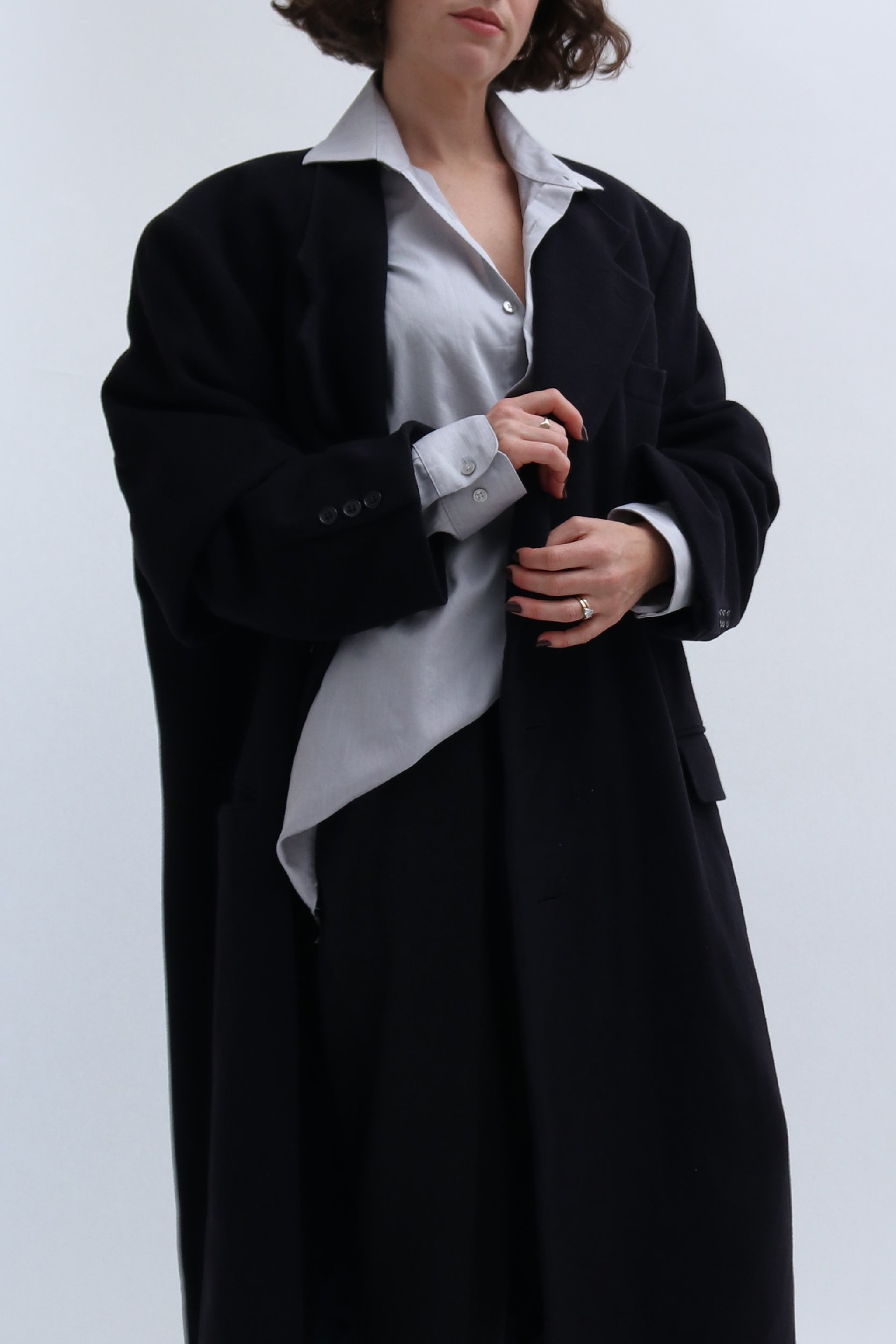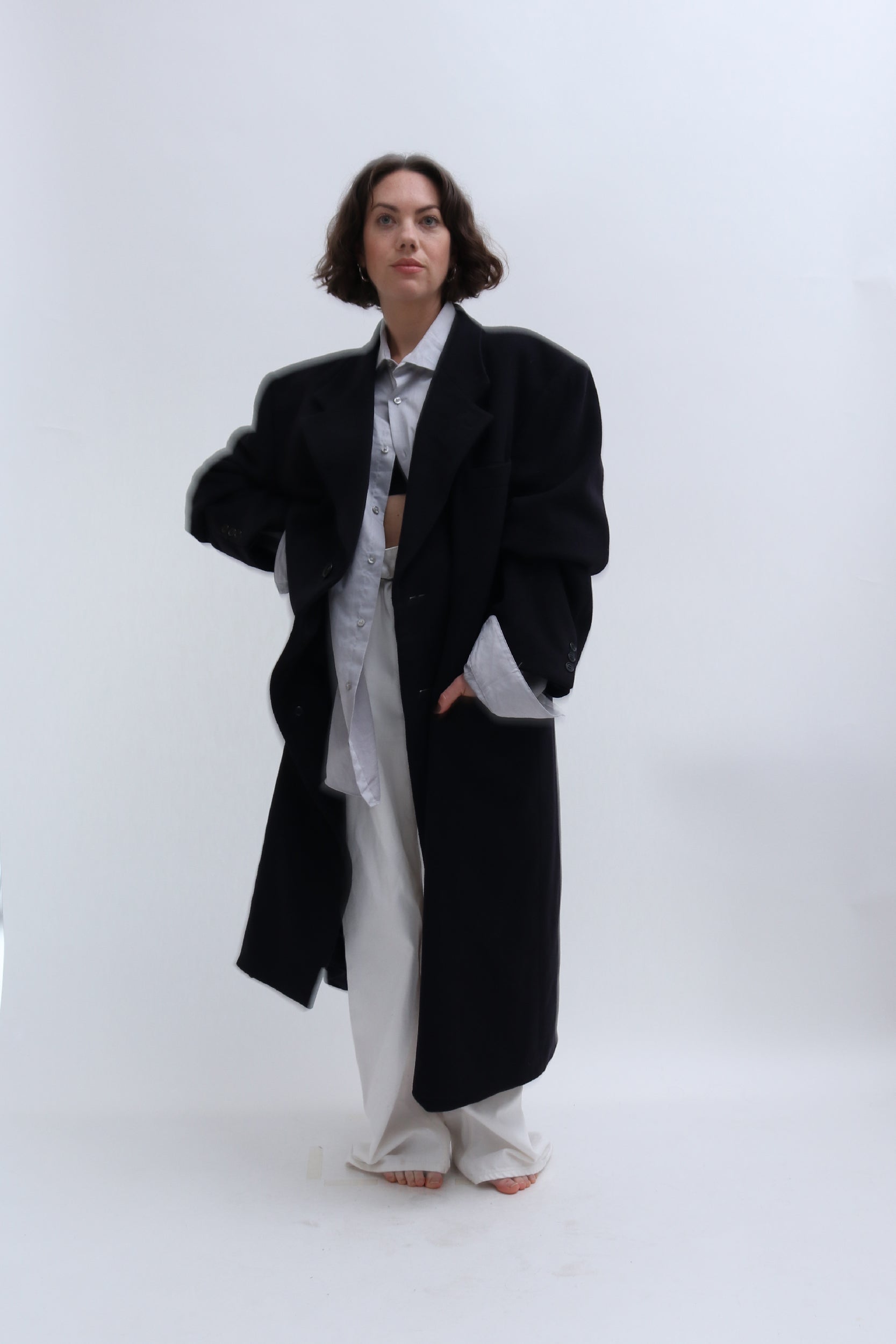 Style Notes: This vintage wool overcoat looks amazing over any outfit. We've styled it here with our Light Grey Calvin Klein Shirt and Vintage Italian Cerruti 1881 Wool Trousers.