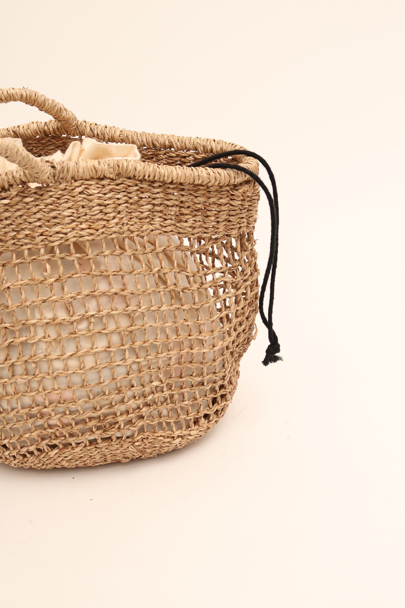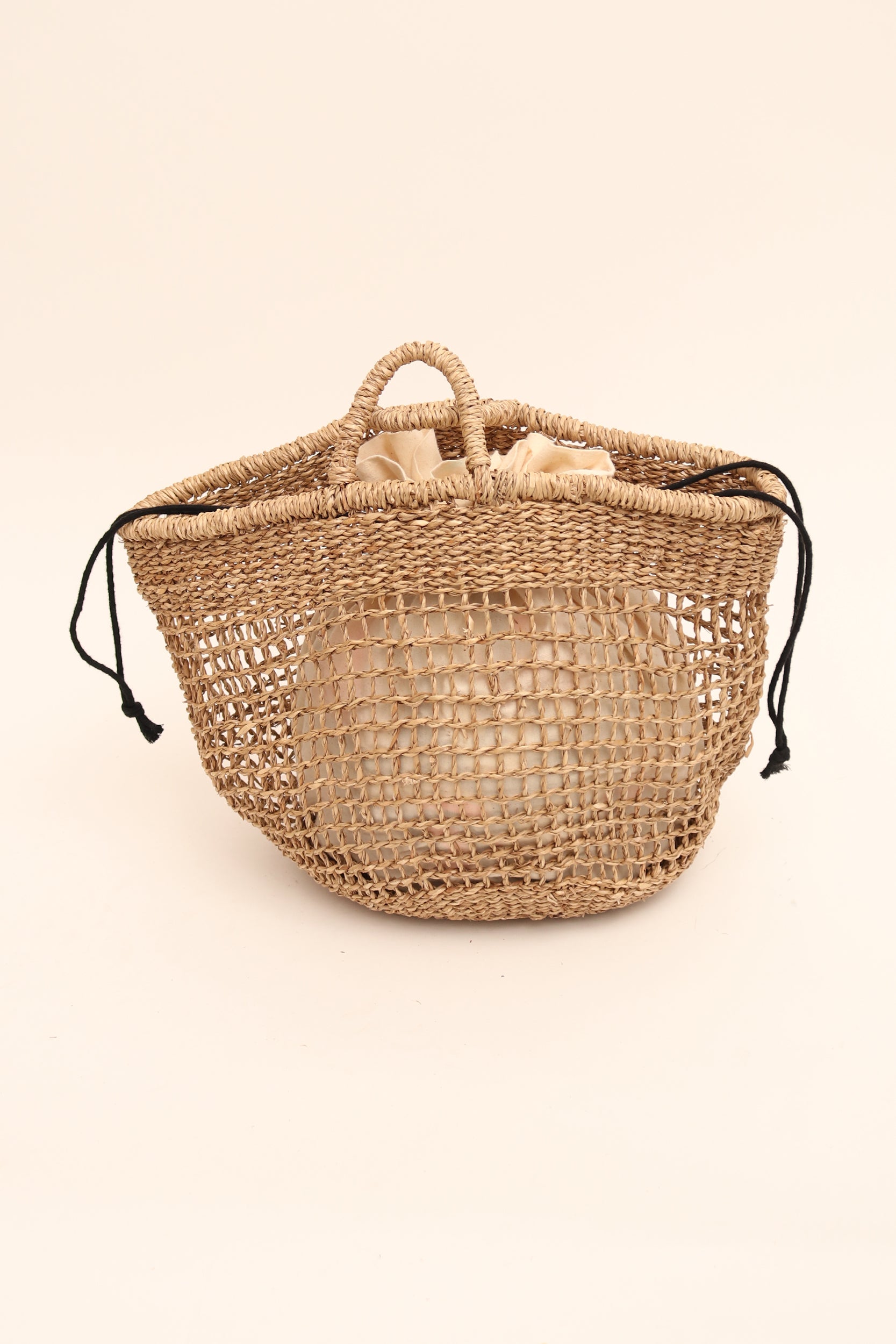 Large wicker basket bag that has a cotton drawstring bag inside to keep all your personal items secure. An easy Summer bag that's will be versatile for so many Summer occasions whether you're heading to the park or the beach.