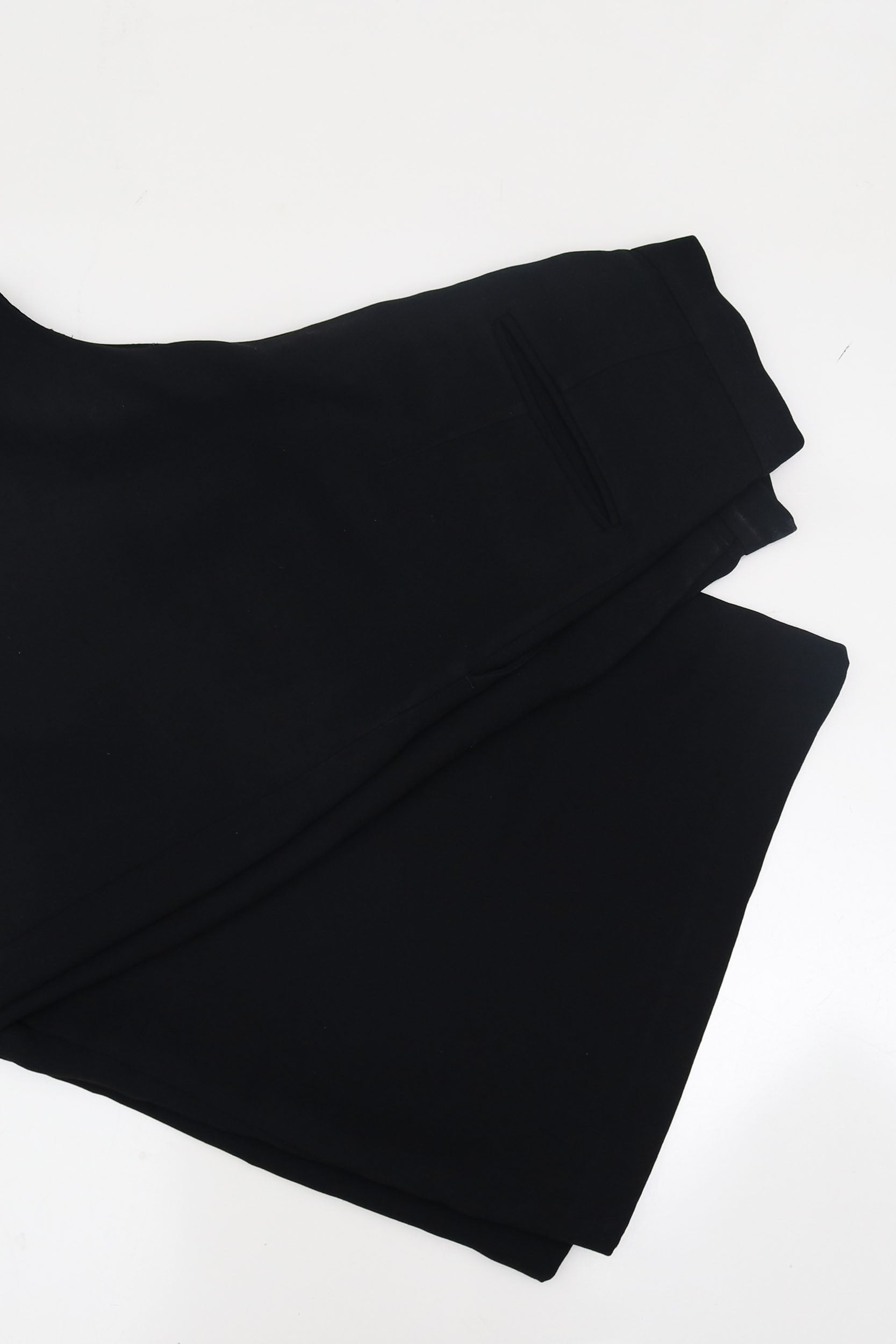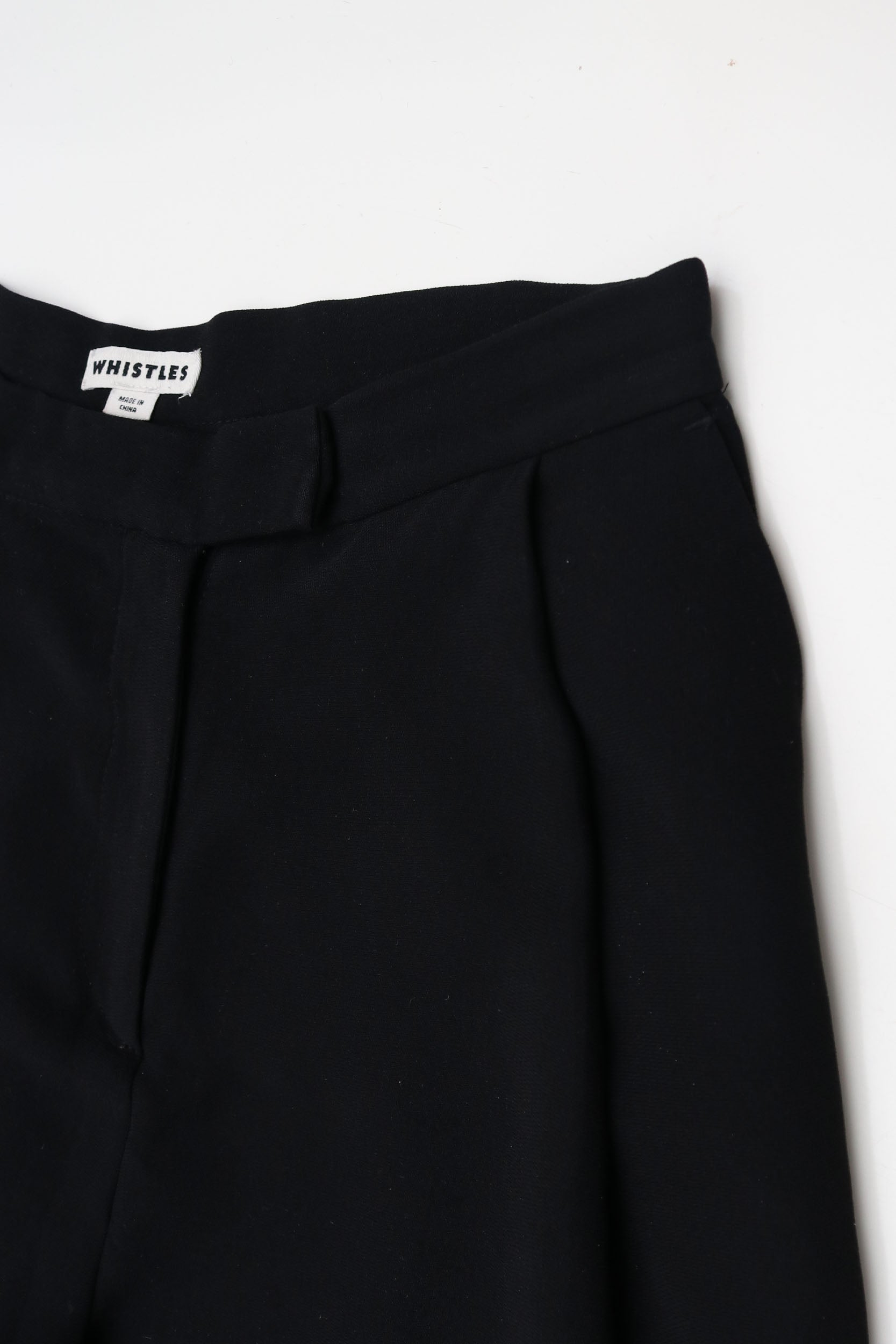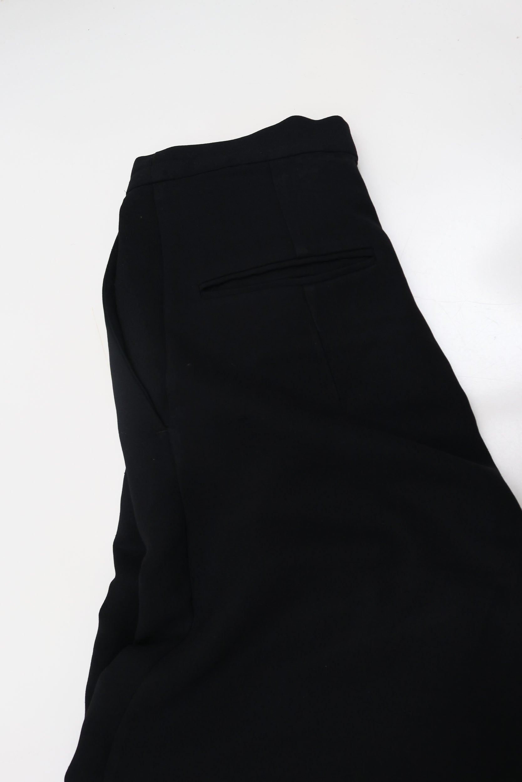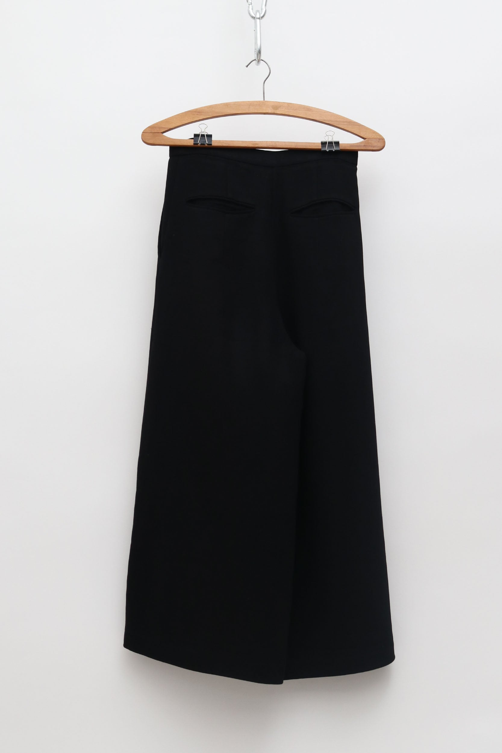 Black wide leg crepe culottes with a beautiful drape and flattering high—waist fit.